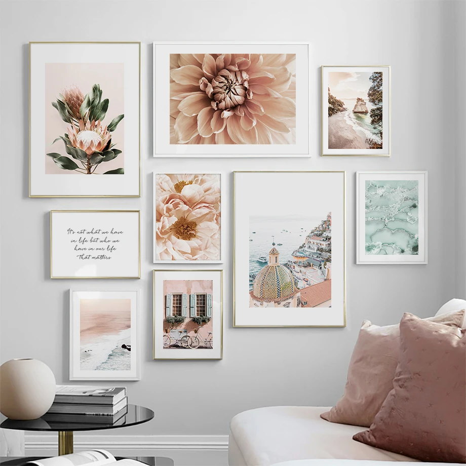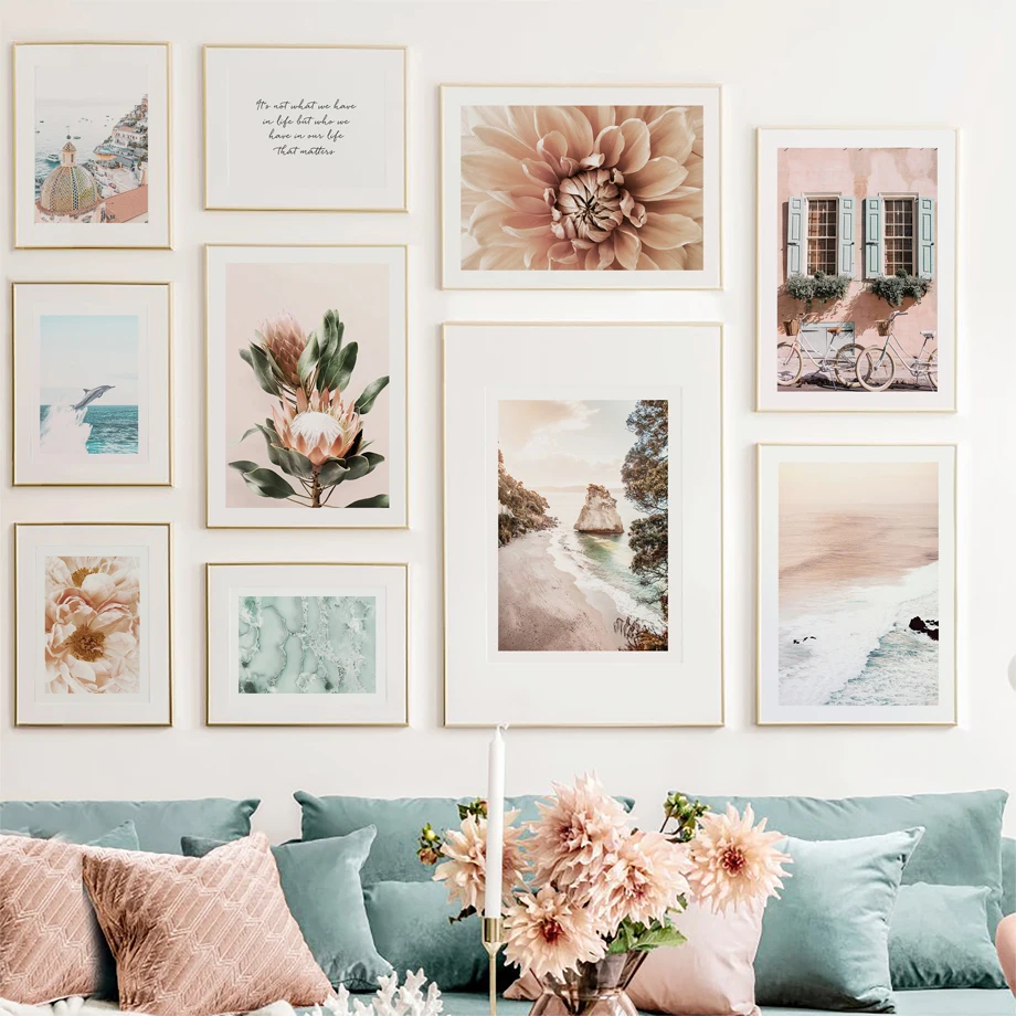 Плакаты мечты, цитаты, рисунки в скандинавском стиле, розовые перья...