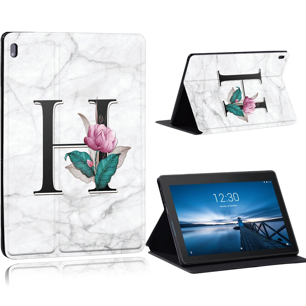 Чехол для планшета Lenovo Tab E10 TB-X104F 10,1 дюймовLenovo YOGA Tab M10 TB-X605FTB-X505 10,1 inch-белый мрамор с буквенным узором