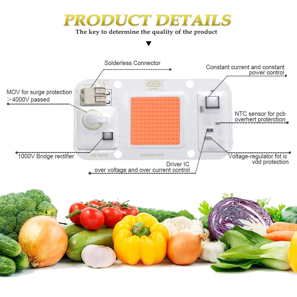 1 шт. гидропоники AC 220 В 50 Вт cob светодиодный светильник для выращивания чип полный спектр 380nm-840nm для комнатных растений рост рассады и цветов
