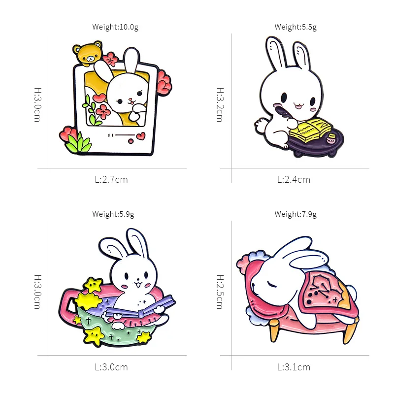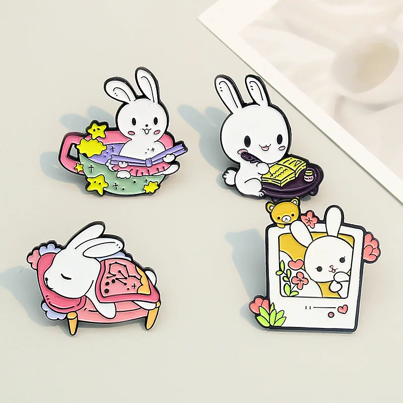 Эмалированная брошь в виде кролика для повседневной жизни, мультяшное животное, булавка для лацкана, для сна, чтения, для книги, для ванны, кролика, фоторамки, индивидуальный значок, булавки