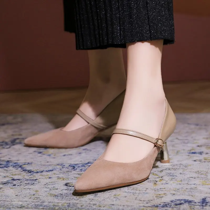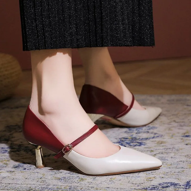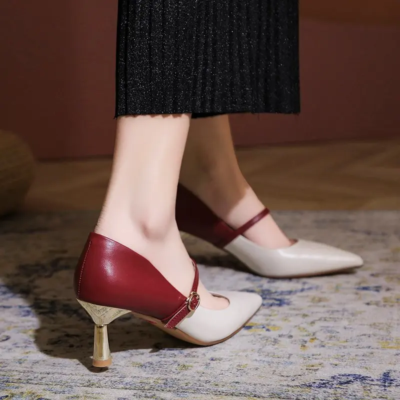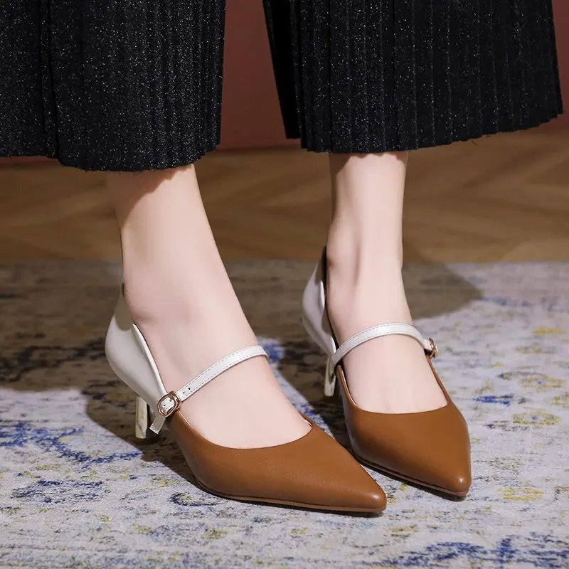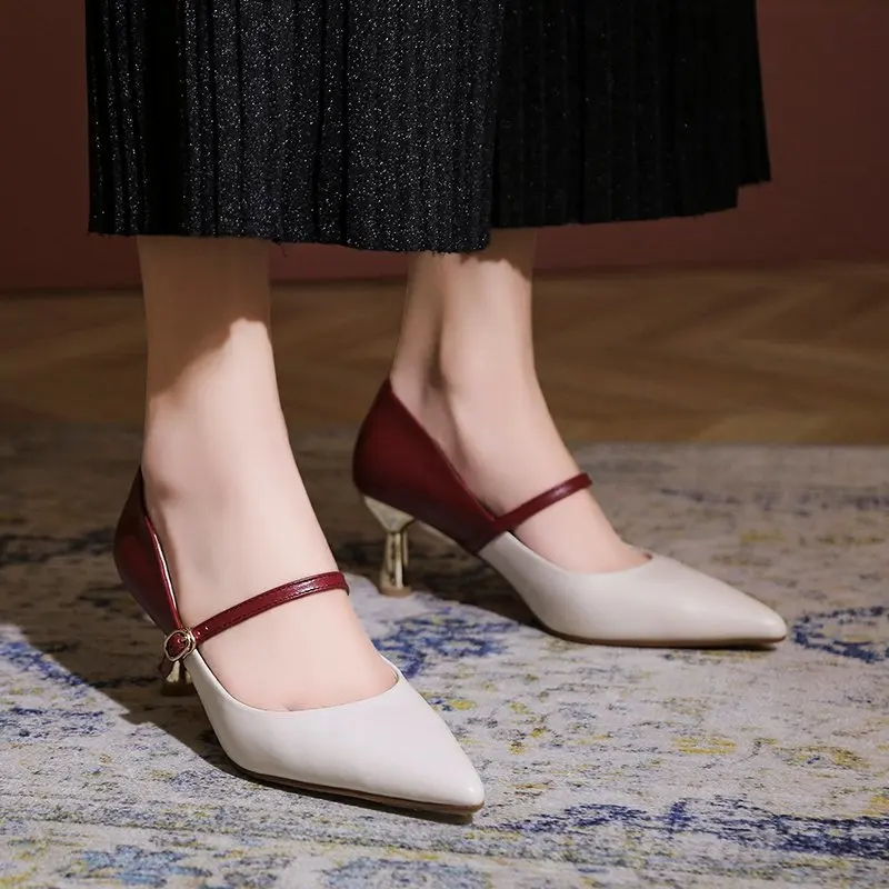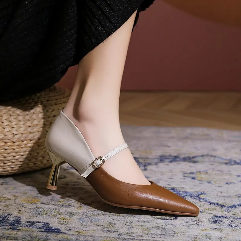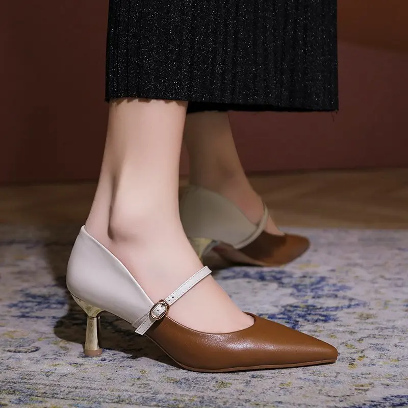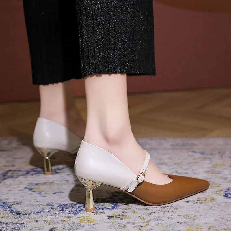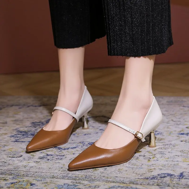 2021 Демисезонные женские туфли мэри джейн пэчворк туфли с острым носком на высоком каблуке классические туфли элегантные женские офисные туфли 8931N