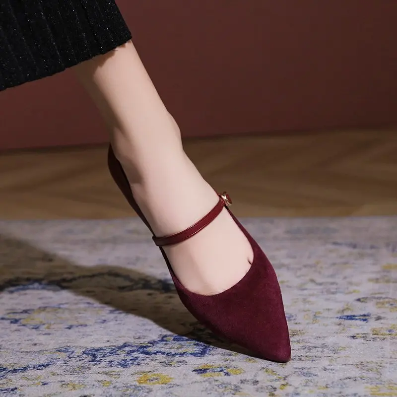 Туфли женские весенние на плоской подошве, с ремешком на щиколотке