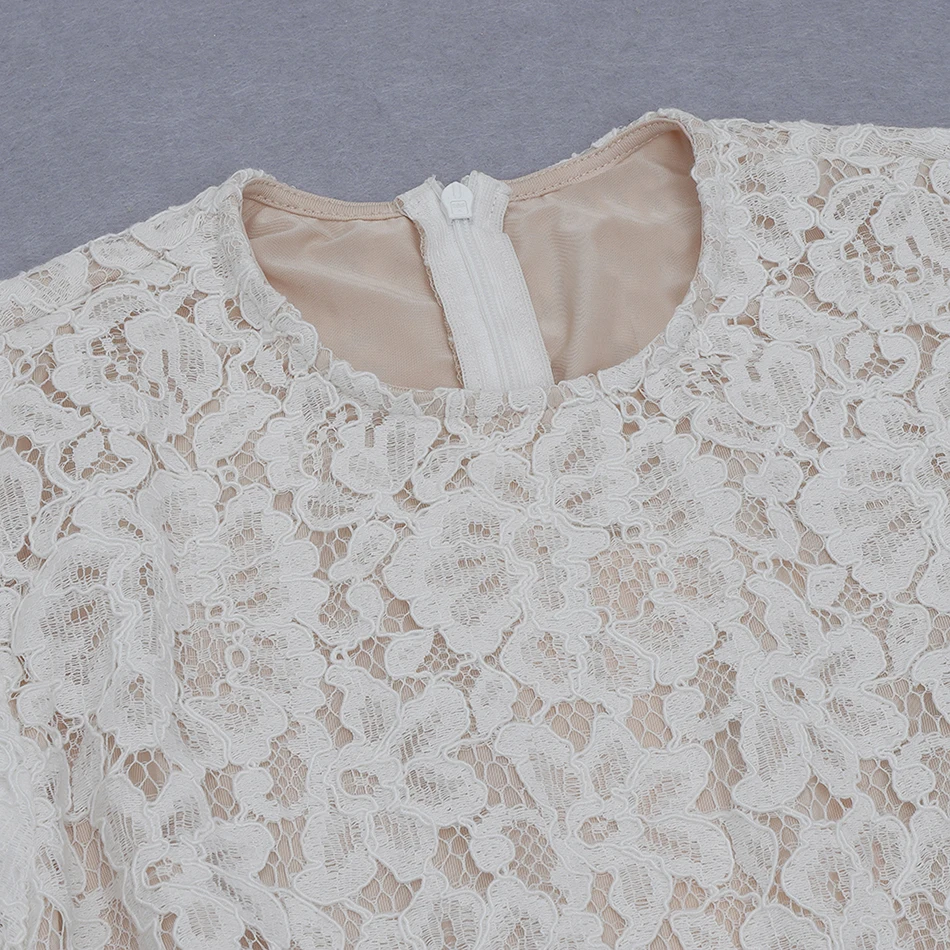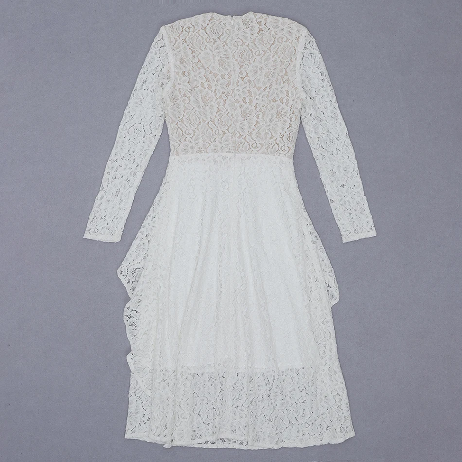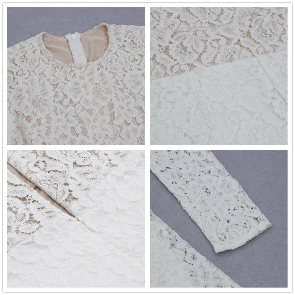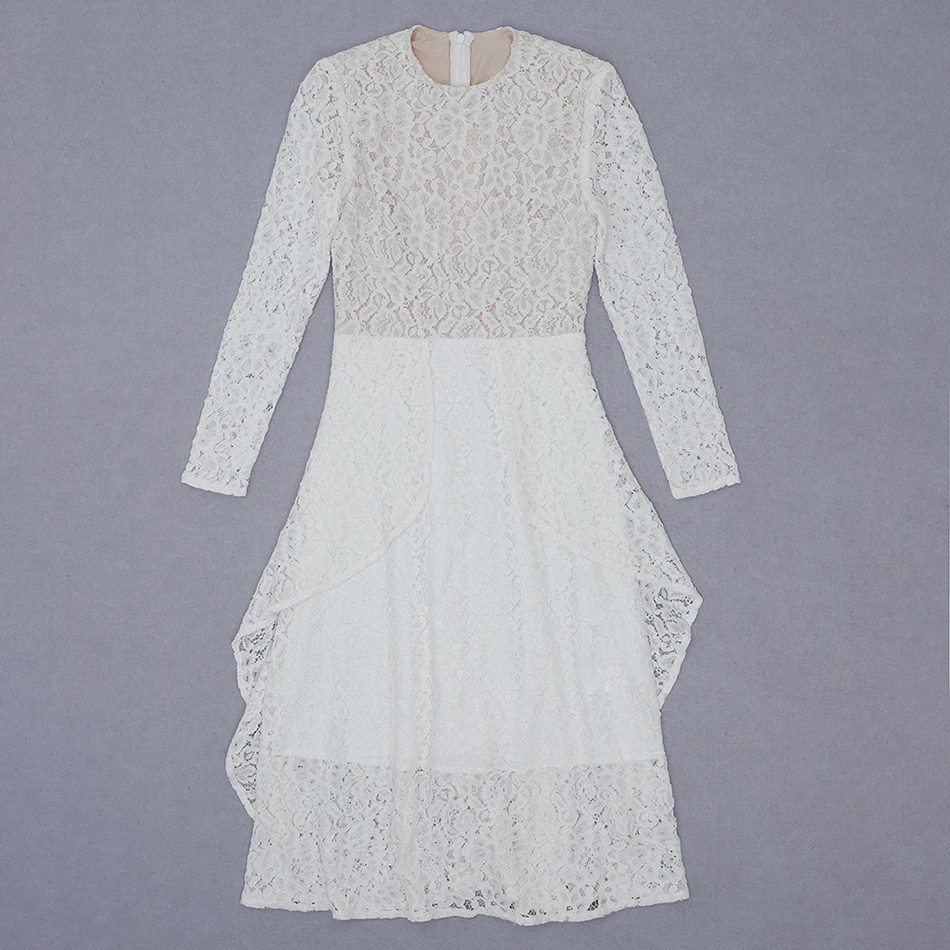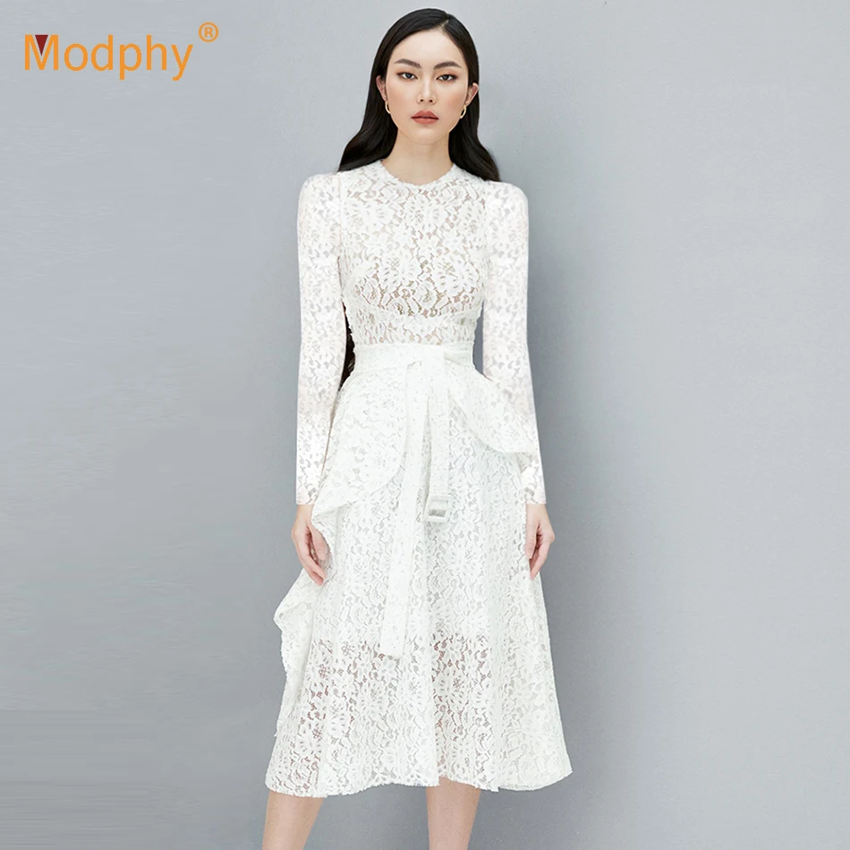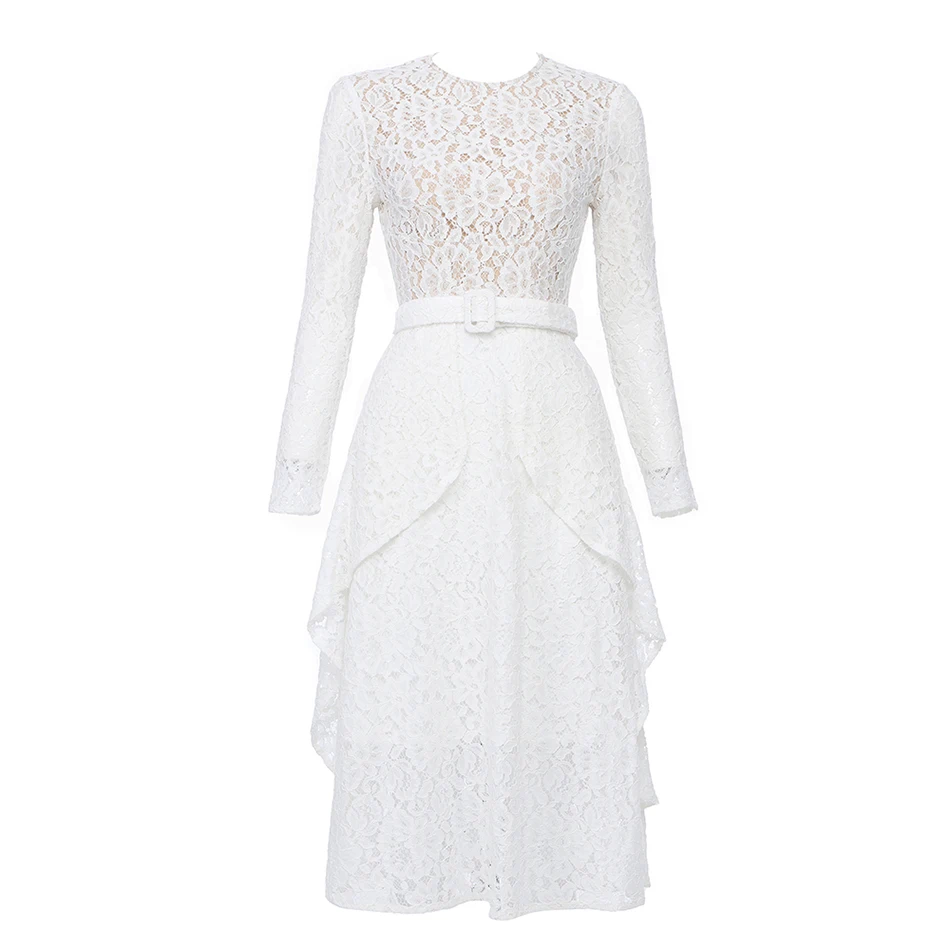 Женское платье с круглым вырезом, элегантное белое кружевное вечернее платье с длинным рукавом, весна 2021
