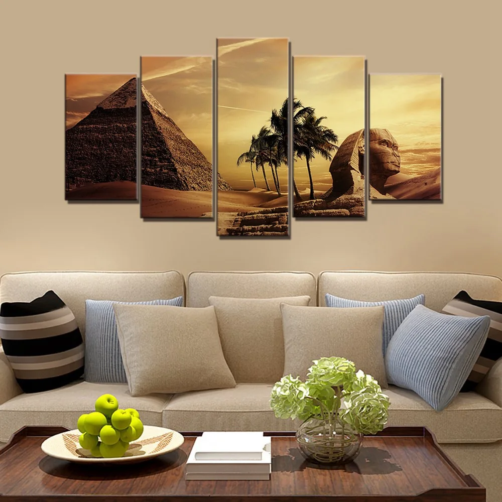 5 шт. картина маслом модуль плакат комната стены пирамиды Египетский Сфинкс Закат пейзаж Картина HD проектор для домашнего украшения бескаркасные