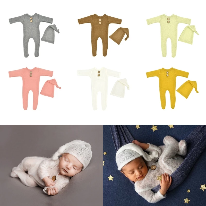 2 шт. мохеровый детский комбинезон, шапка, реквизит для фотосъемки новорожденных, вязаное шерстяное боди 54DF