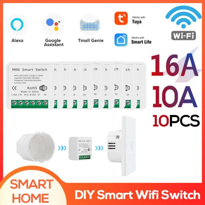 Беспроводной смарт-выключатель Tuya с Wi-Fi, 16 А10 А, таймер управления, автоматизация умного дома, работает с Alexa Google Home