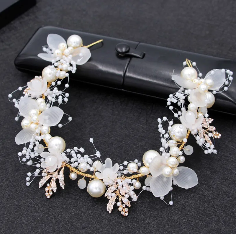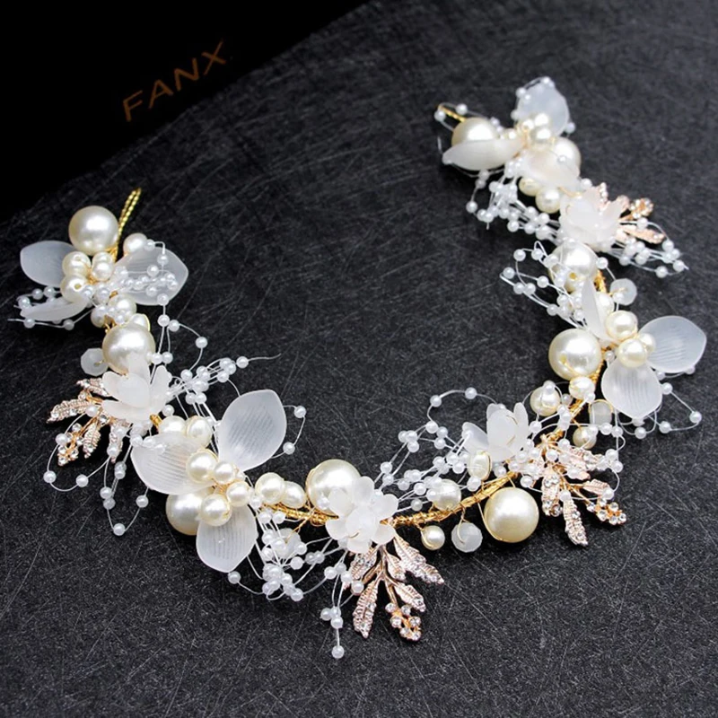 Повязка на голову женская, с искусственным жемчугом и цветами