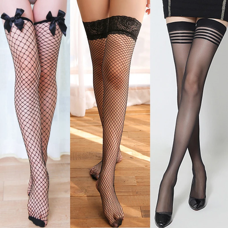 Сексуальные чулки в сеточку, женские черные и белые чулки выше коле...