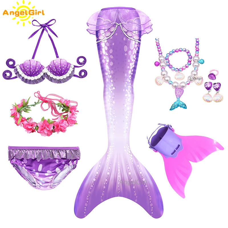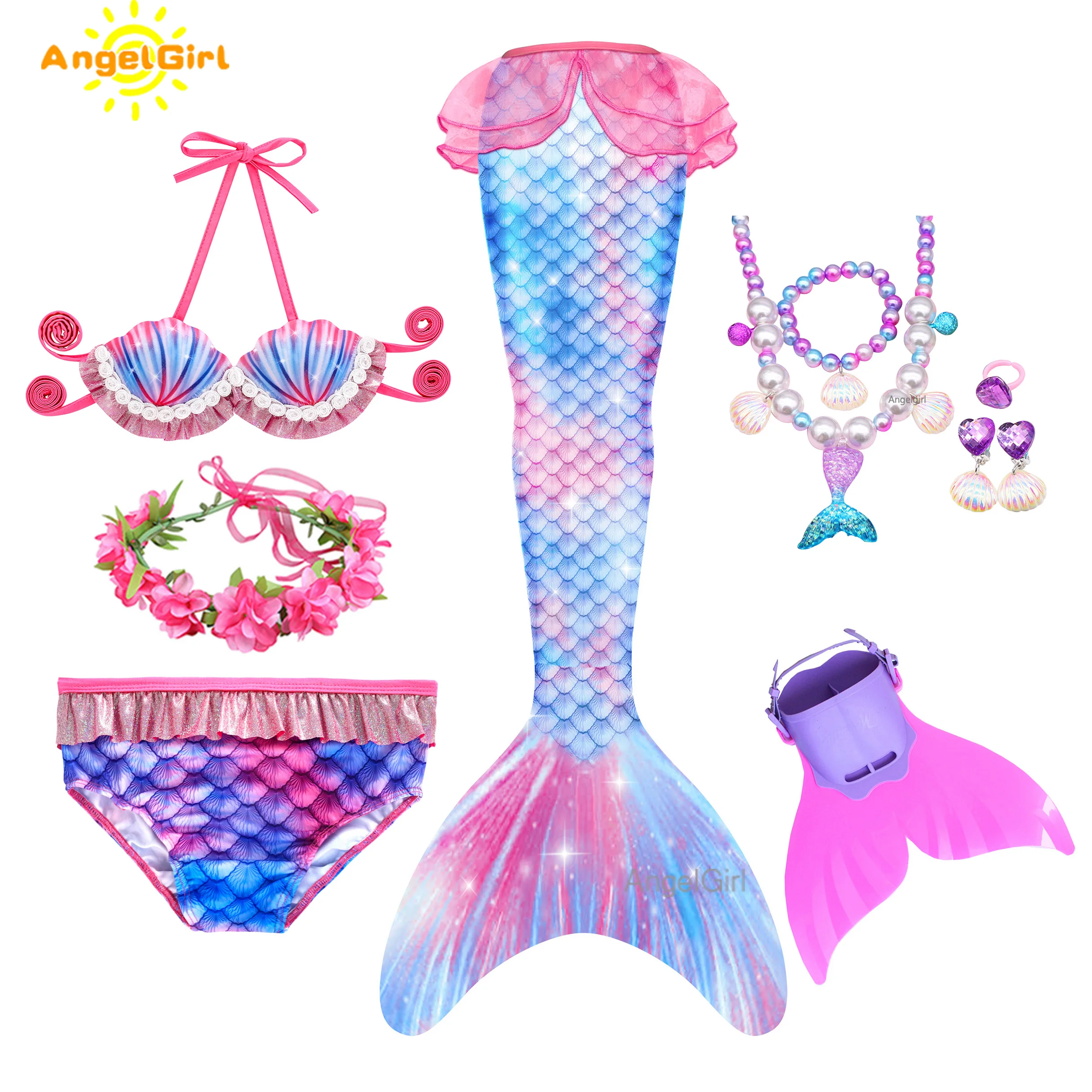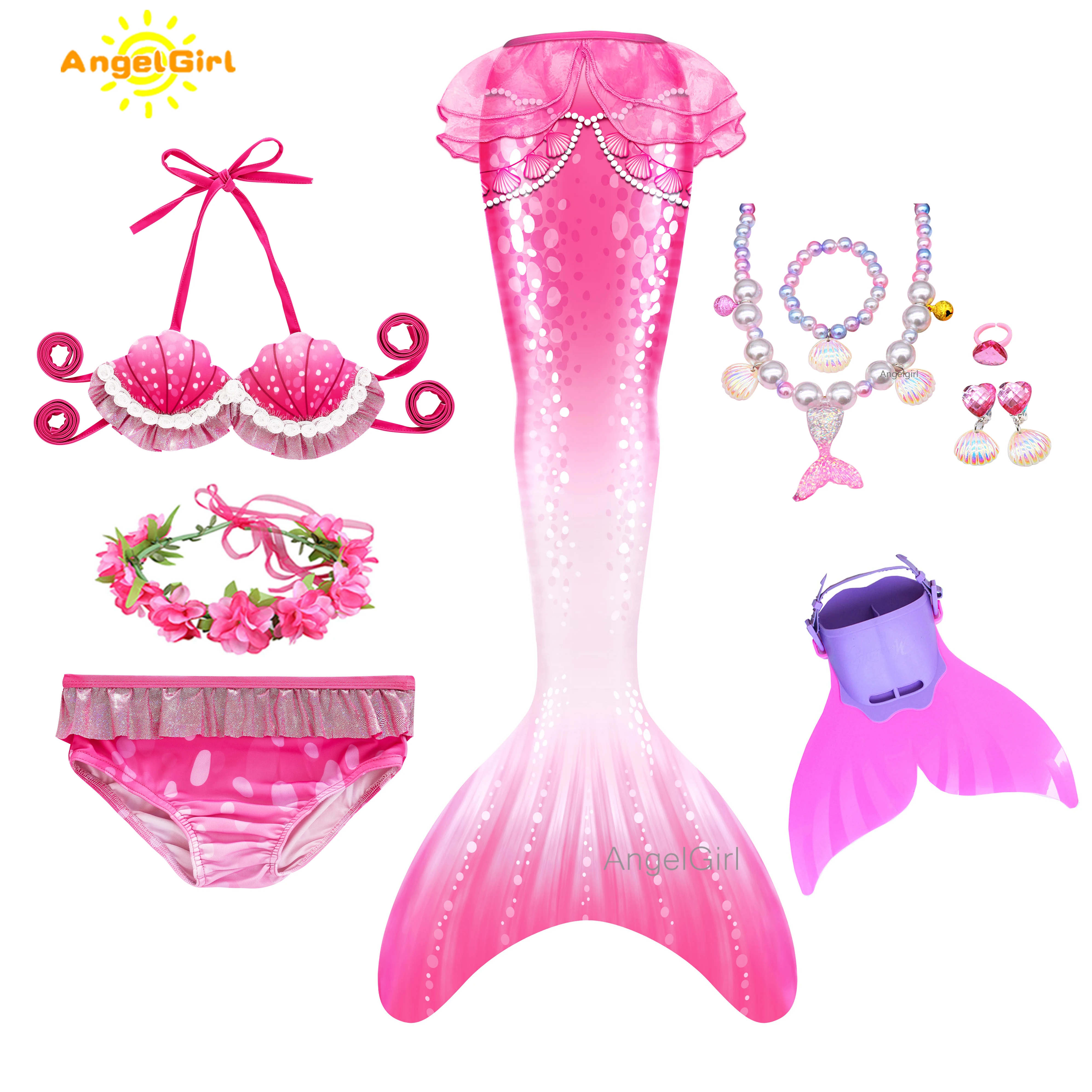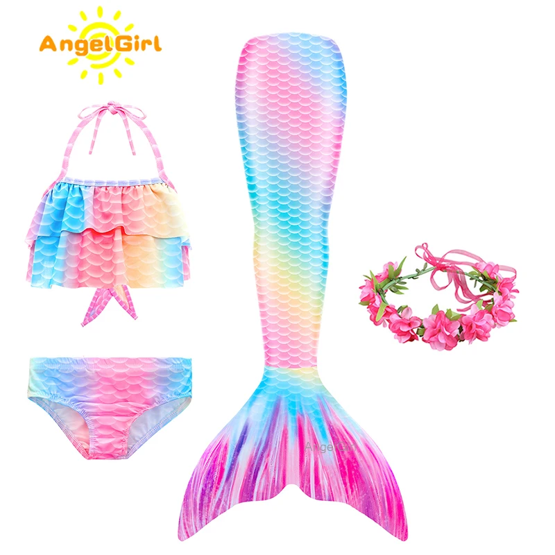 AngelGirl детский купальный костюм с хвостом русалки купальный костюм для косплея купальник с моноластами очками гирлянда Рождественские подарки для девочки