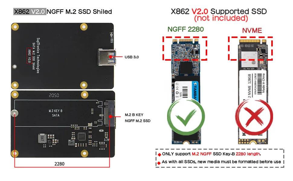 Плата Расширительная Geekworm X862 V2.0 M.2 NGFF SATA SSD с разъемом USB 3,1, поддержка Key-B 2280 SSD для Raspberry Pi 4