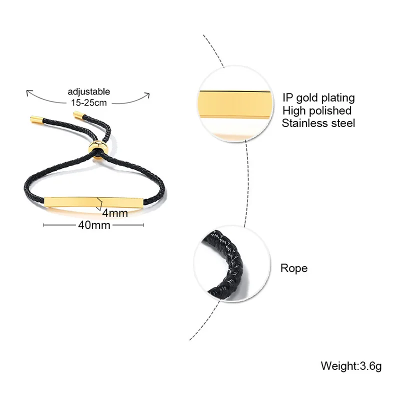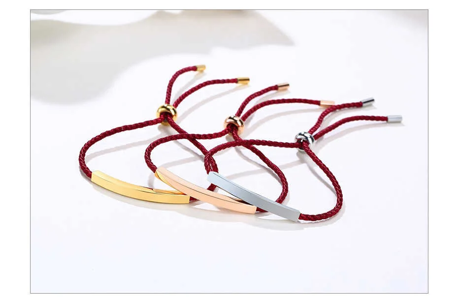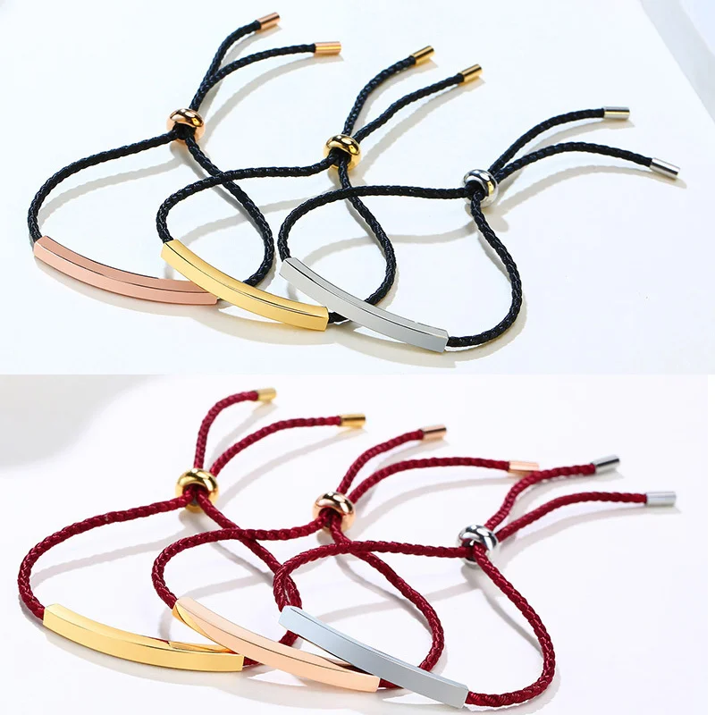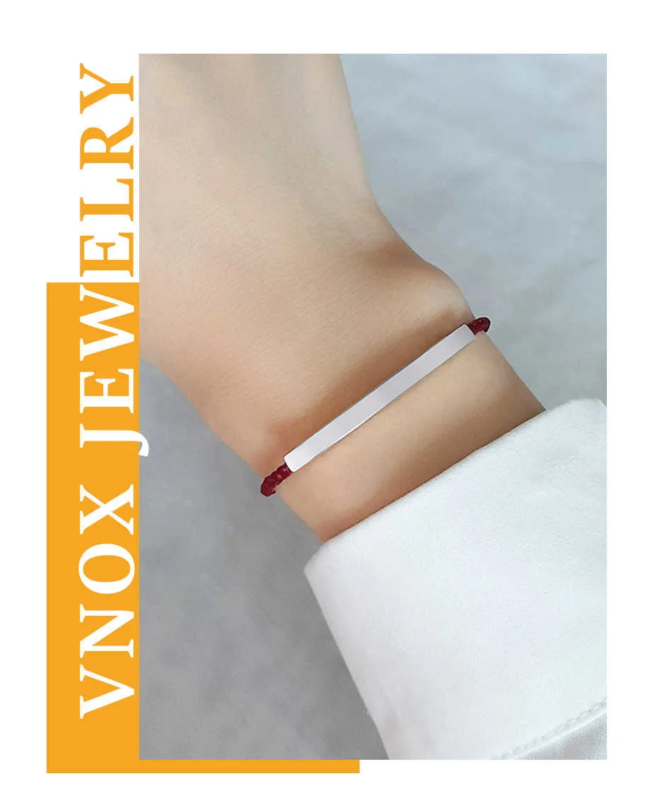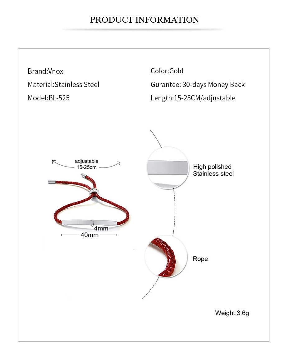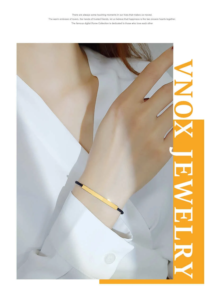 Браслет женский Vnox, минималистский, с гравировкой, тонкий, регулируемая длина, повседневный веревочный