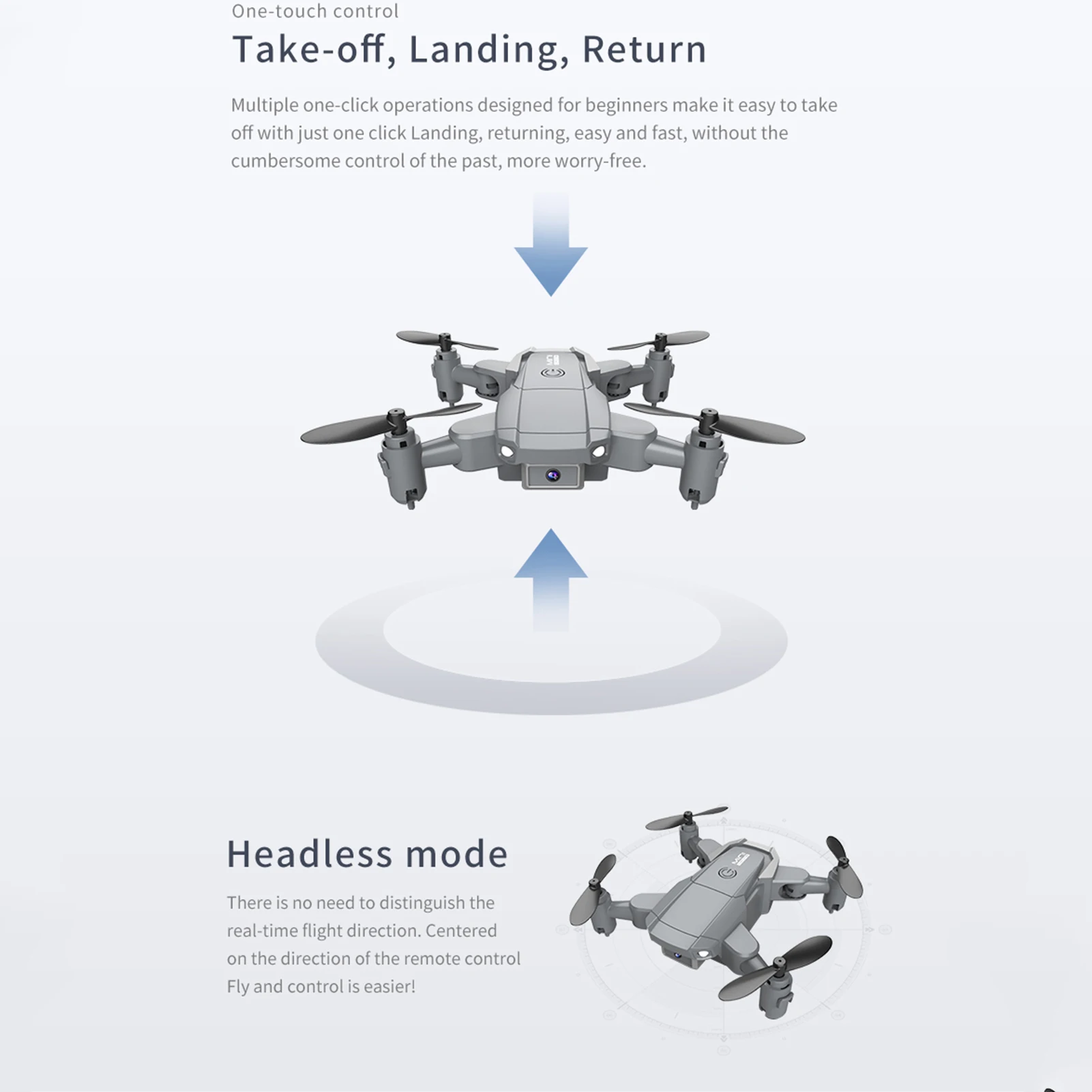 5. Безголовый режим: в безголовом режиме нет необходимости регулировать положение самолета перед полетом, а функция поддержания высоты для стабильного полета.