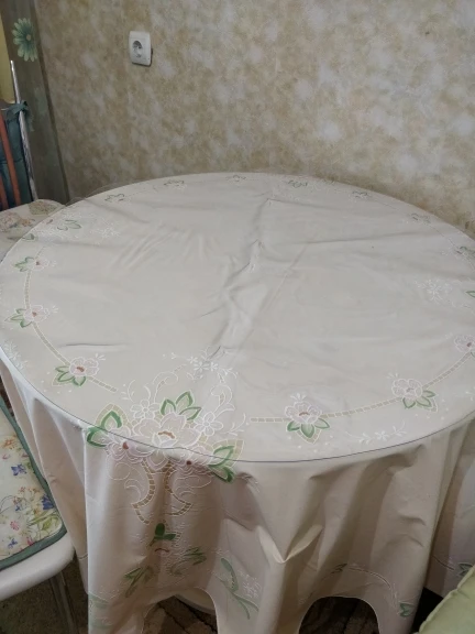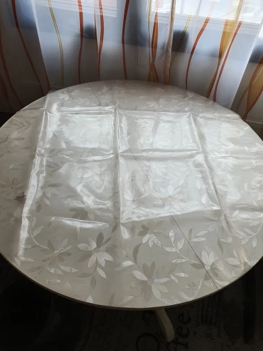 Скатерть пришла сложенной до маленького прямоугольника, с большим количеством заломов, не ожидали, думали в рулоне будет, не понятно сколько будет выправляться. Есть сильный запах пластика.