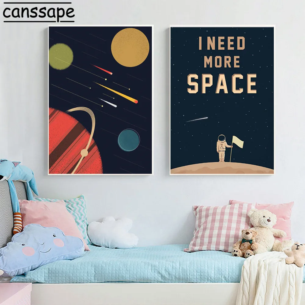 Планета принт космонавт холст картины постер на космическую тематику Детская Wall Art принты Nordic настенные картины для детей Спальня украшения
