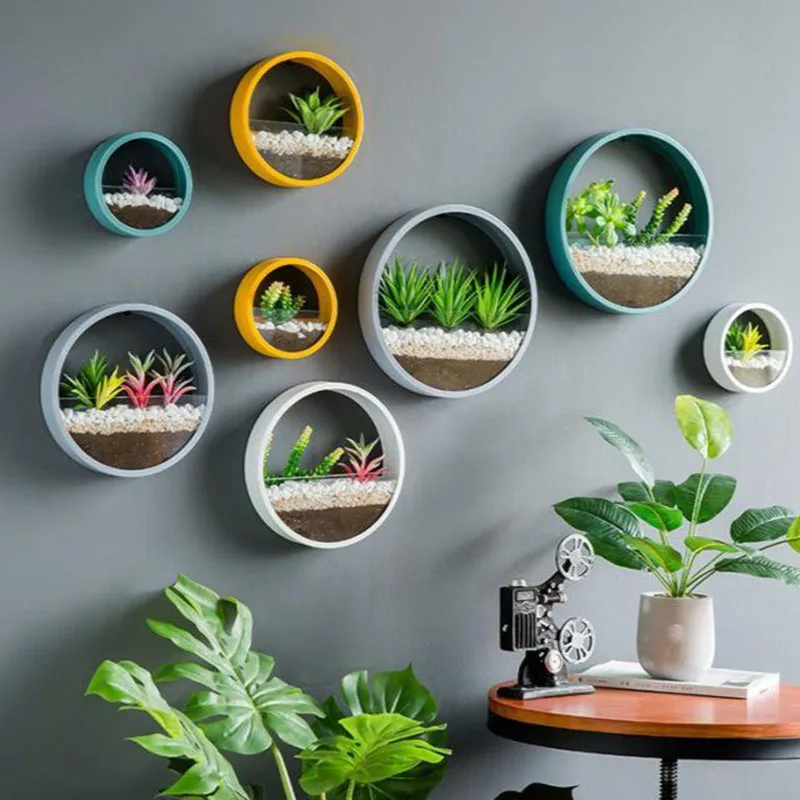 Настенная круглая ваза, художественный однотонный бонсай, украшение для гостиной, ресторана, стеклянный контейнер для суккулентов