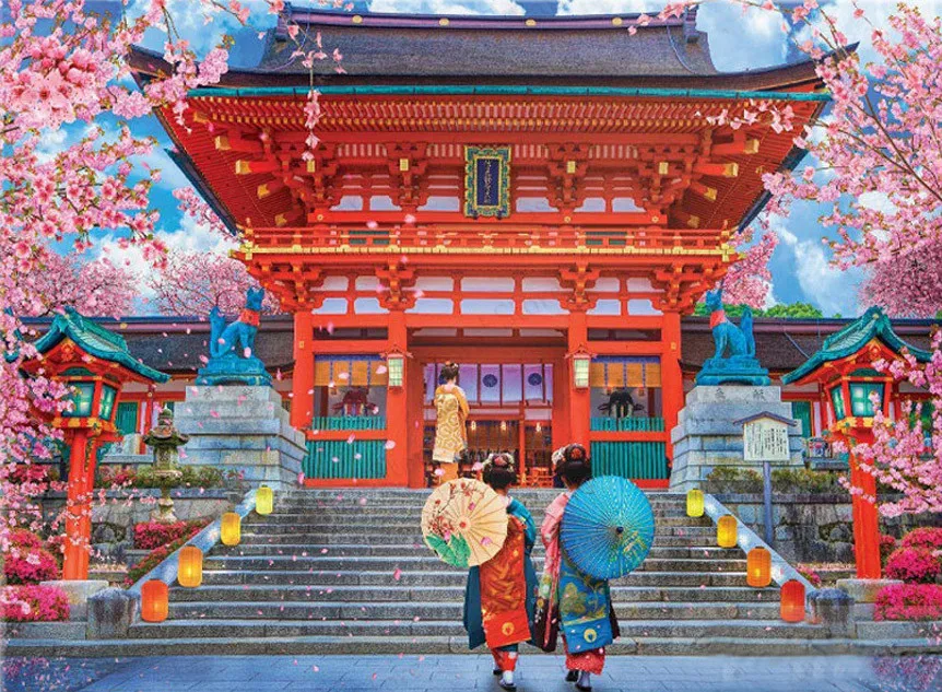 Японский Храм вишневый цвет пейзаж алмазная живопись рукоделие Алмазная вышивка крестиком Мозаика картина из страз
