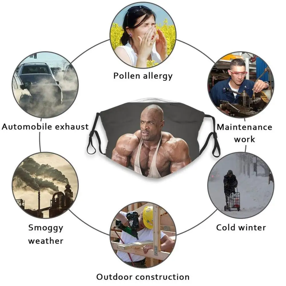Маска Ronnie моющаяся с принтом, массивный бодибилдинг с фильтром для смешного рота, Ронни, Ронни, Олимпия Mr козы, Ifbb Delt