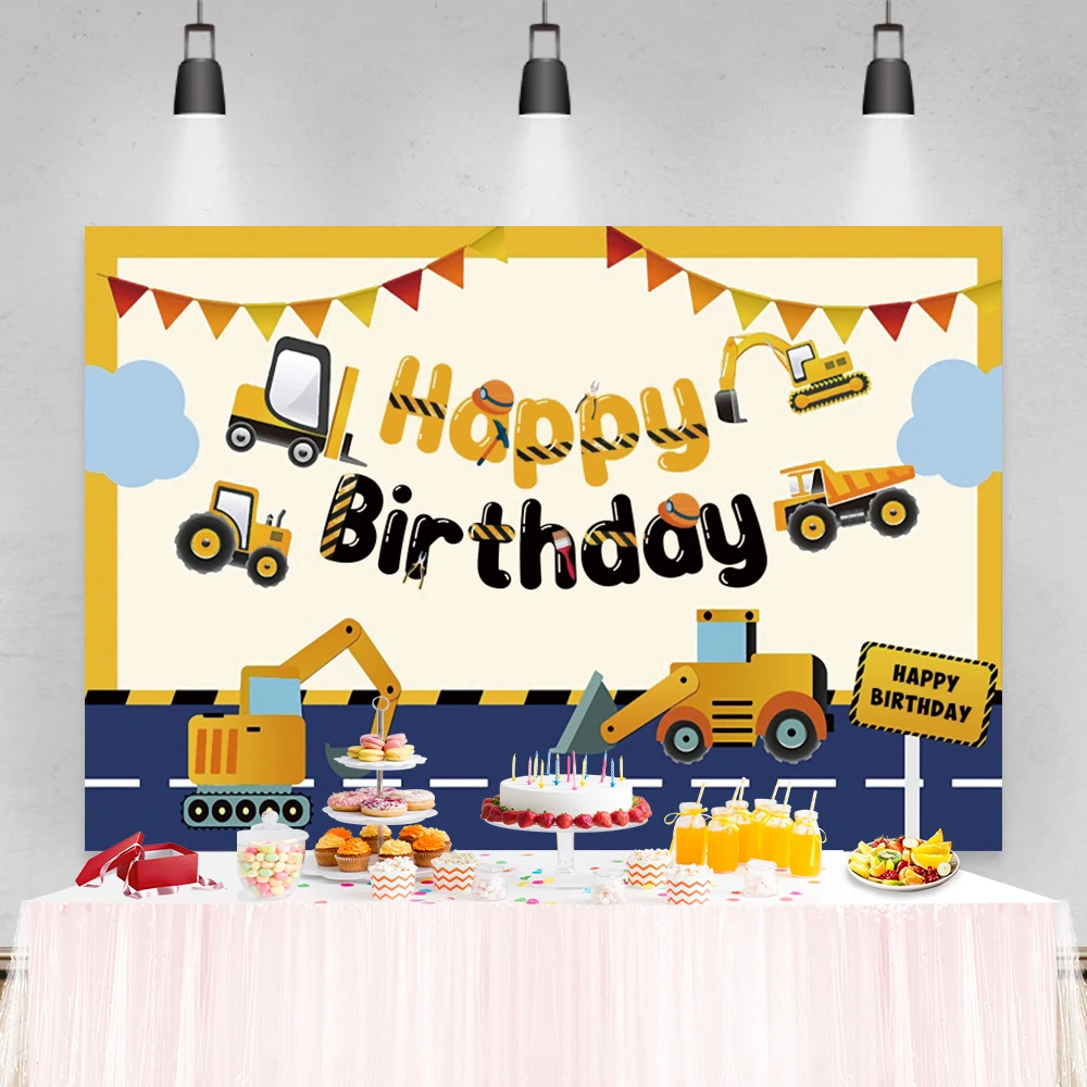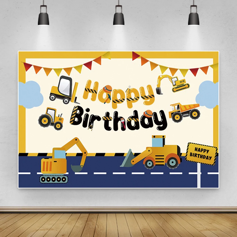 Laeacco день рождения фоны строительные зоны экскаватор грузовик жу...
