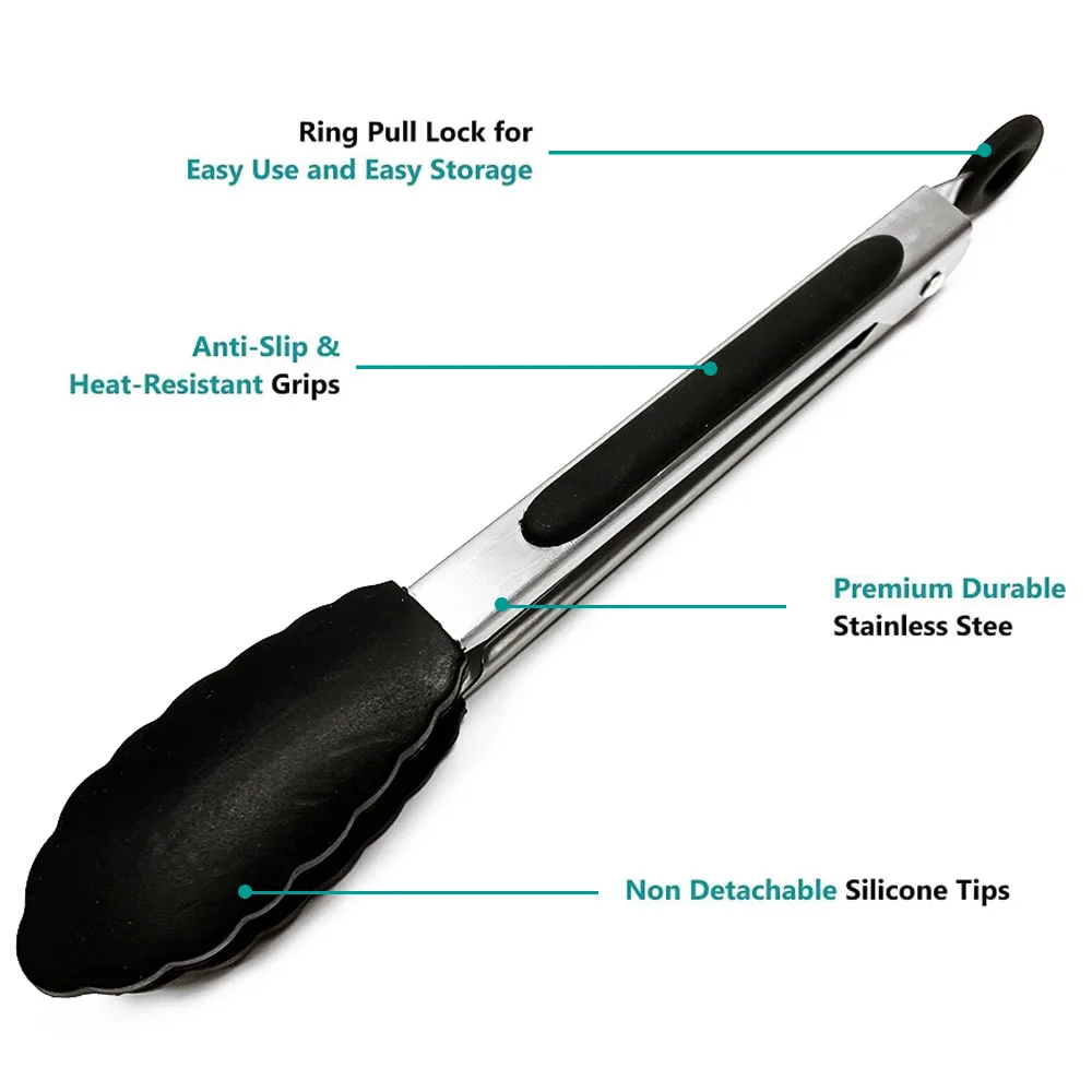 Силиконовые щипцы из нержавеющей стали, нескользящий кухонный прибор с зажимом для приготовления барбекю, салата, гриля