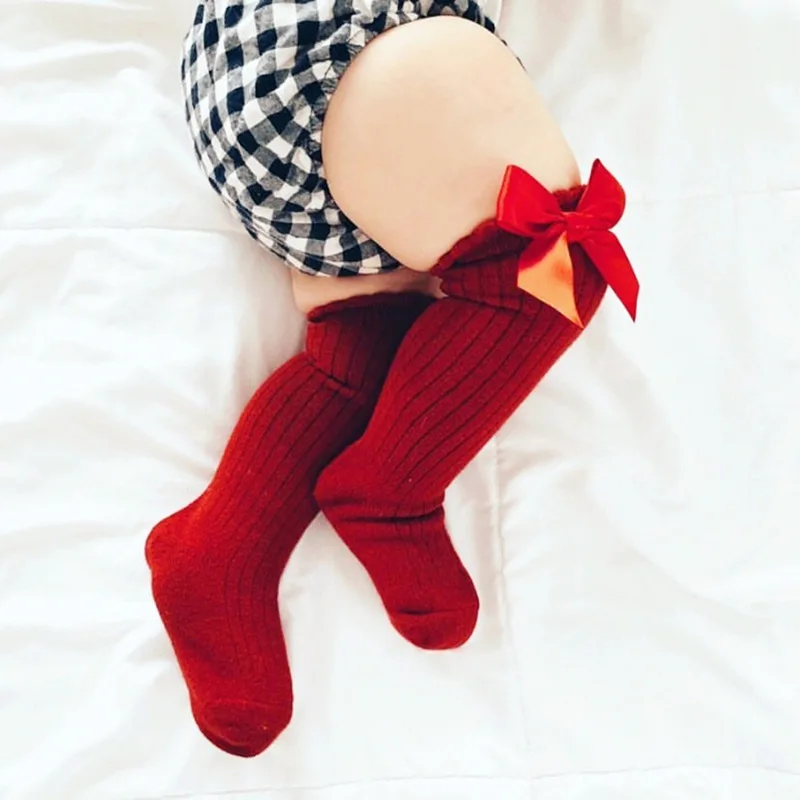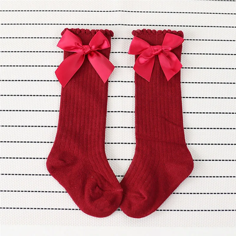 Милый От 0 до 6 лет Детские носки для маленьких девочек Гольфы с бантиком длинные мягкие хлопковые кружевные детские носки с оборками принцесса Стиль