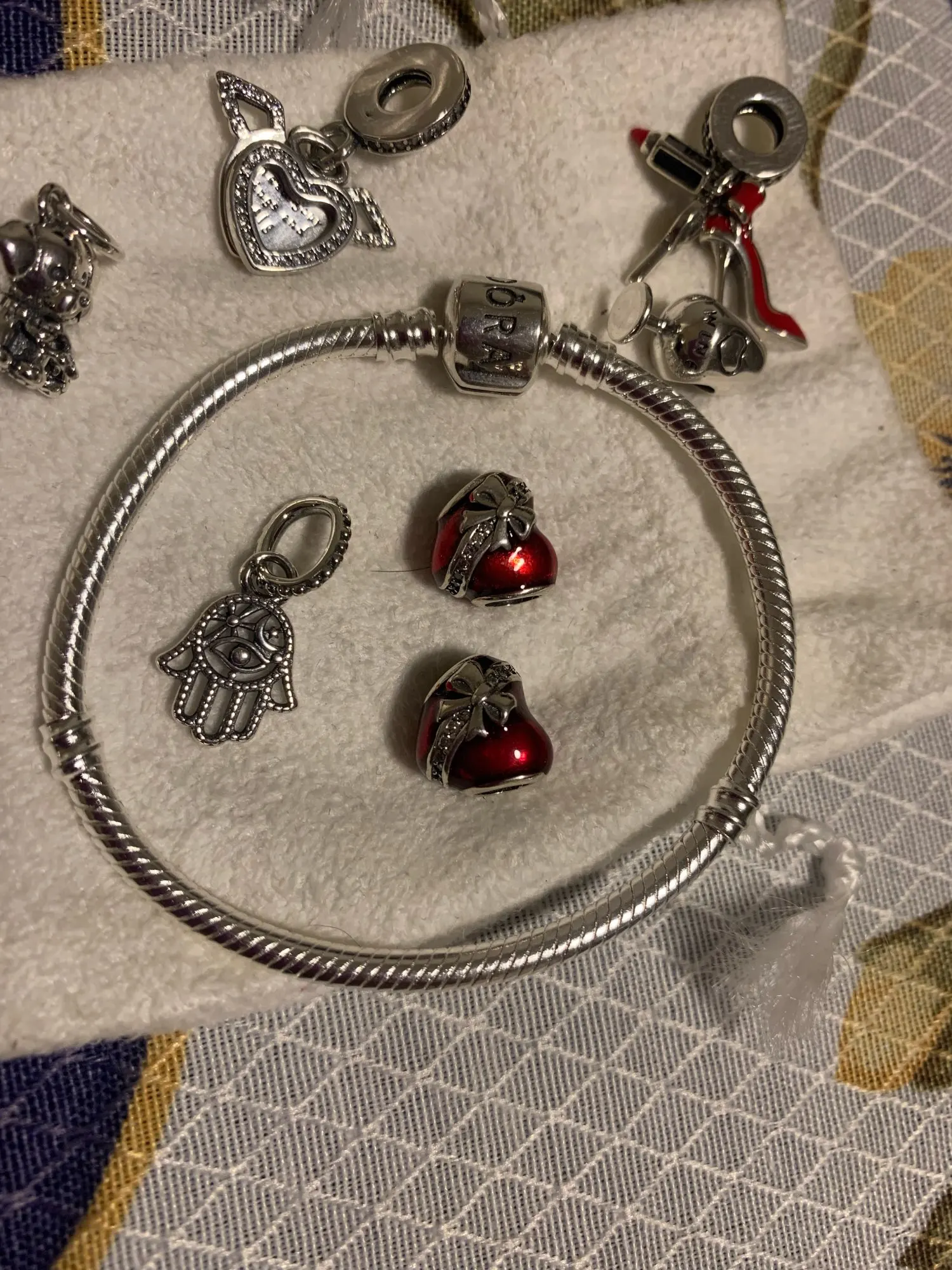 Очень хорошее качество, как настоящие! Так как я получил свой заказ, прелести на моих руках, я никогда не снимал свои украшения, и они целы. Если вам нравится Пандора, я очень рекомендую,