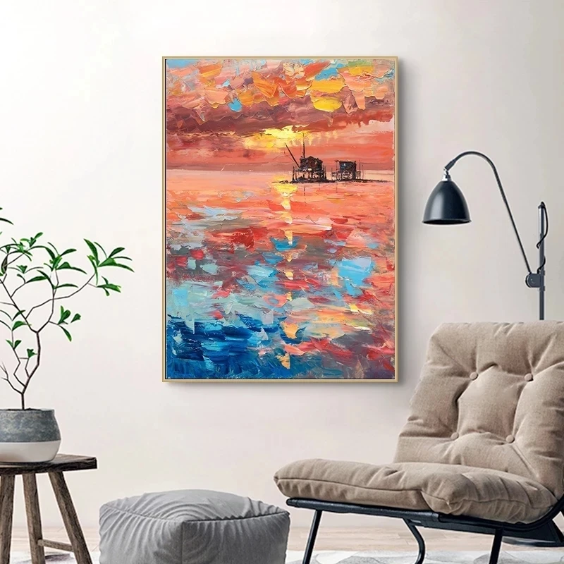 Красивый закат пейзаж Живопись Печать на водонепроницаемом холсте Б...