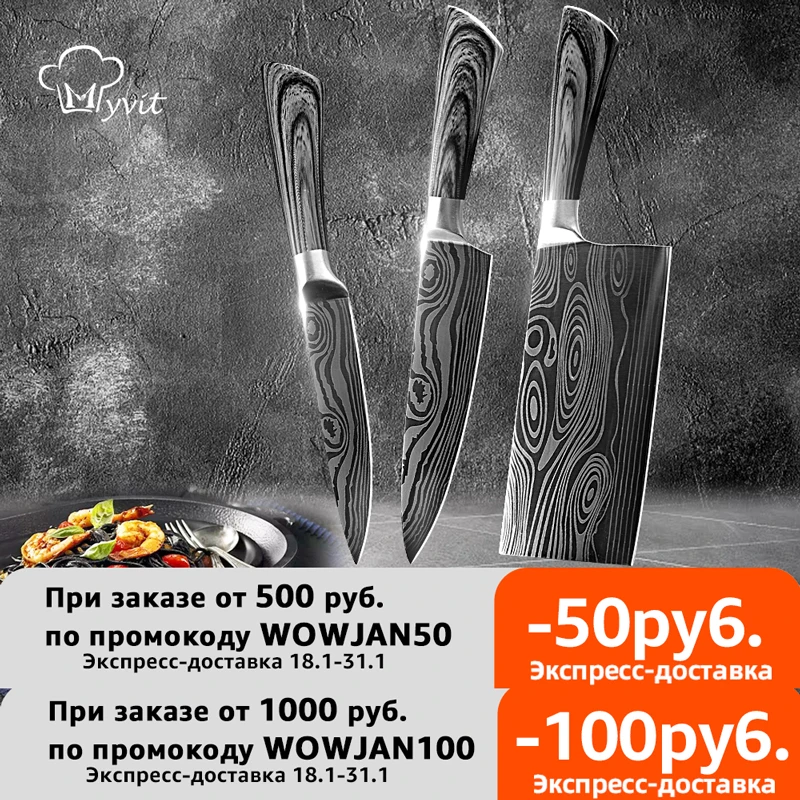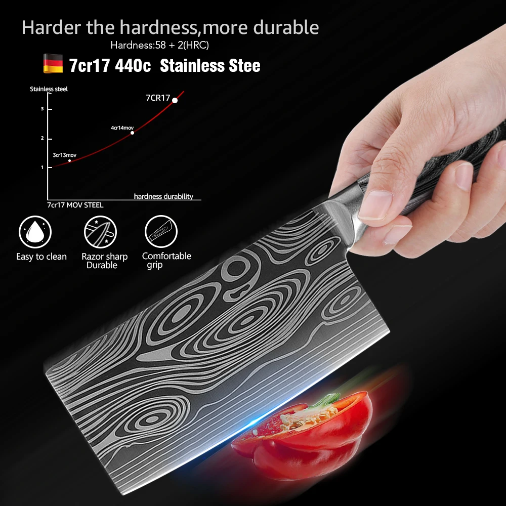 Набор поварских японских ножей, 5, 7, 8 дюймов, 7CR70 440C, нож для мяса, сантоку