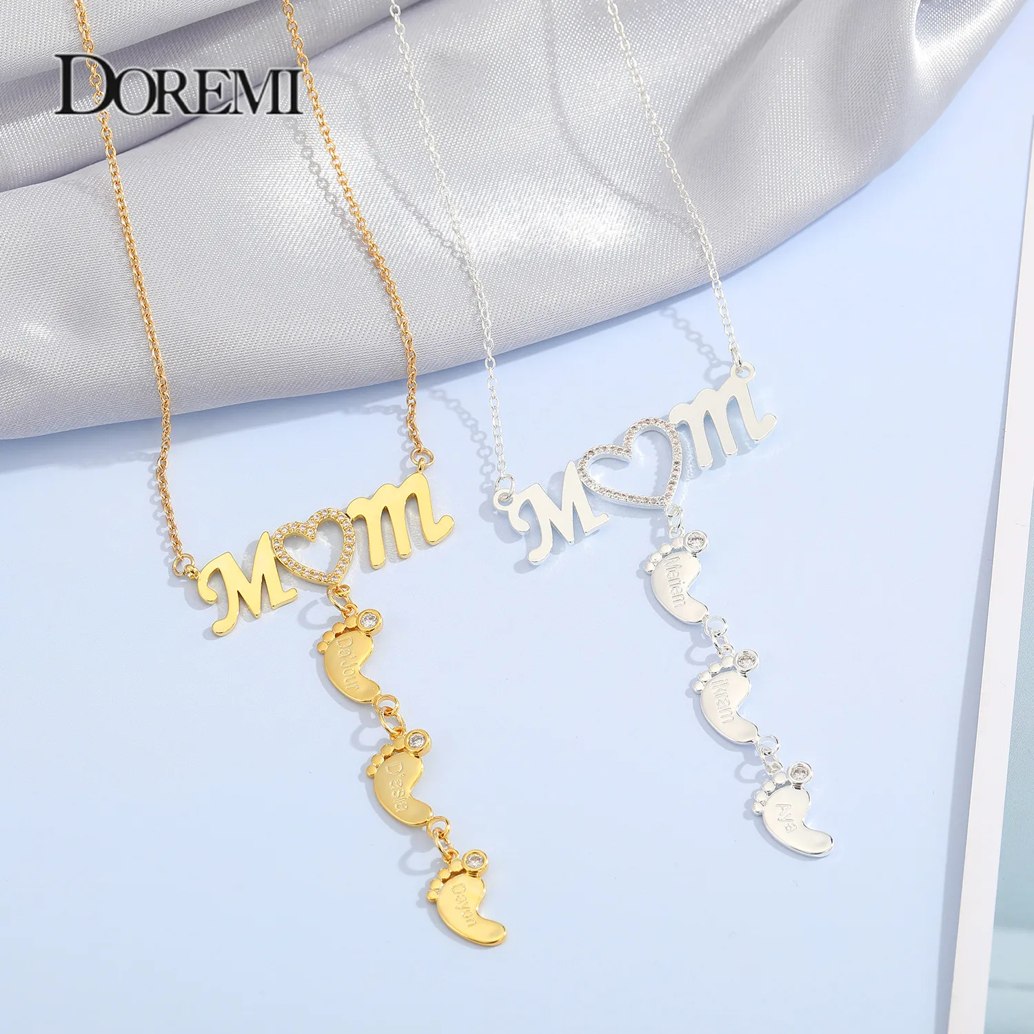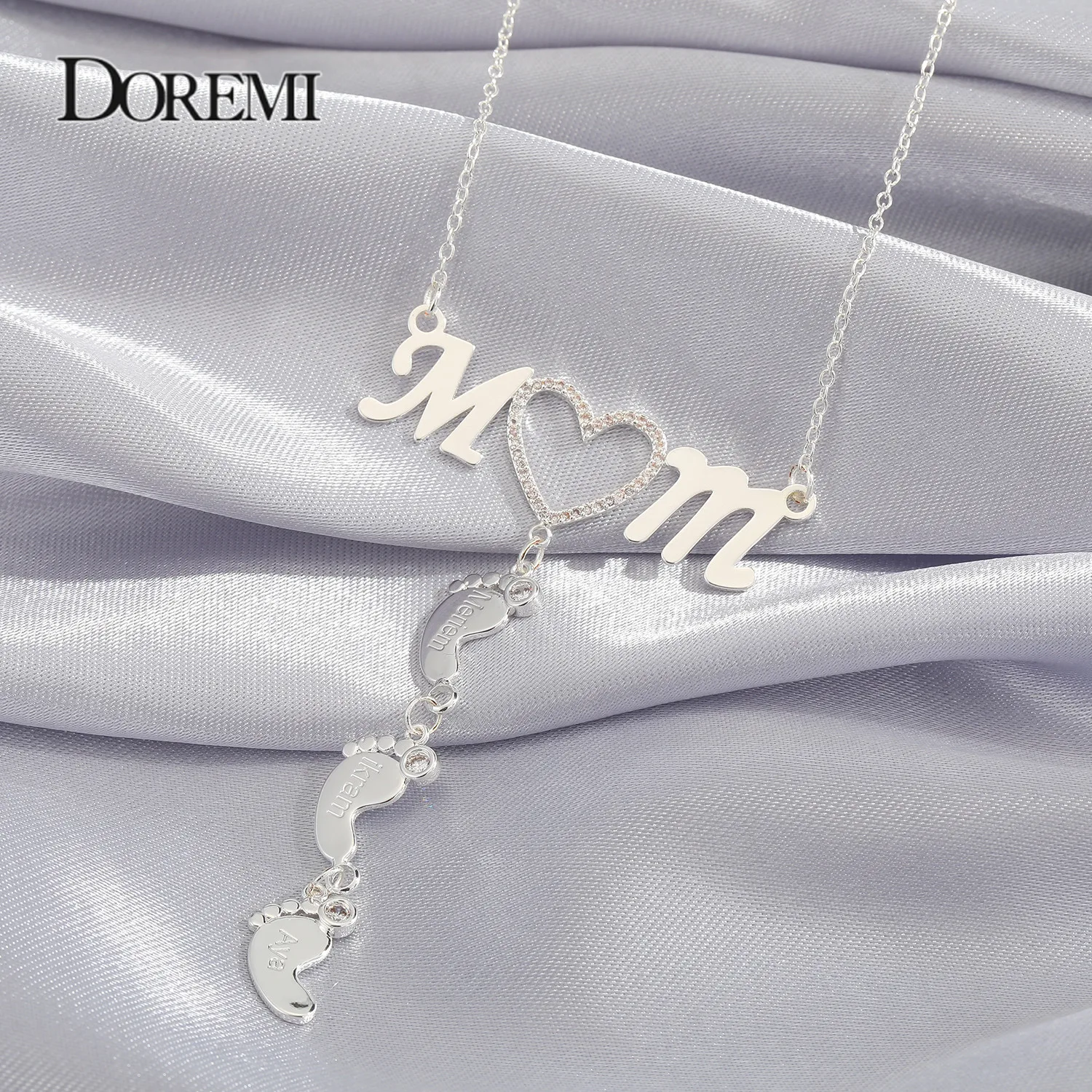 DOREMI подвеска в виде капли для детей, подвеска с именем для влюбленных мамы, ожерелье с кулоном на заказ, дату рождения, персонализированная инкрустация, ожерелья с кубическим цирконием и сердцем