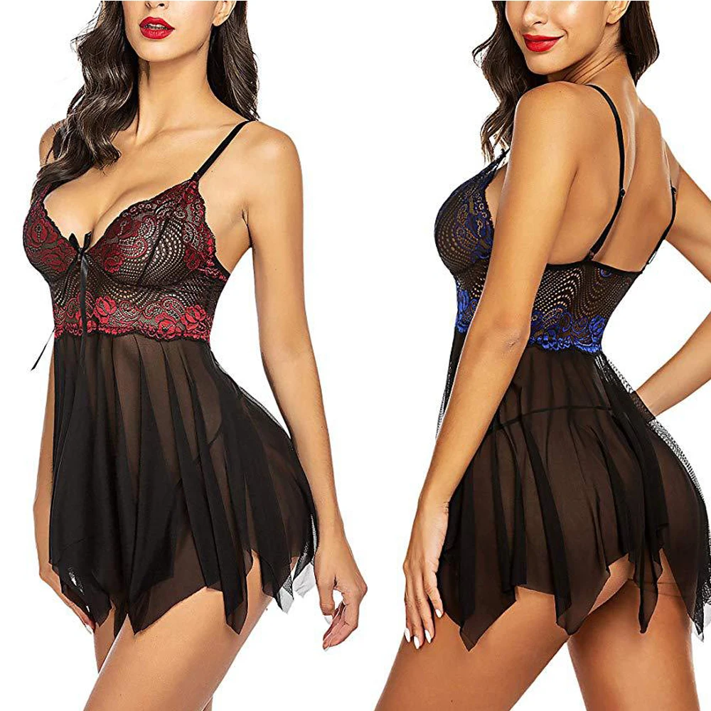 JIAYAN Ночная сорочка на бретельках Сексуальная женская пижама кружевное сшитое Ночное платье с сетчатым подолом 2021 Новая женская ночная одеждаОсновной Материал: спандексЦвет: цвет изображенияТаблица размеров: