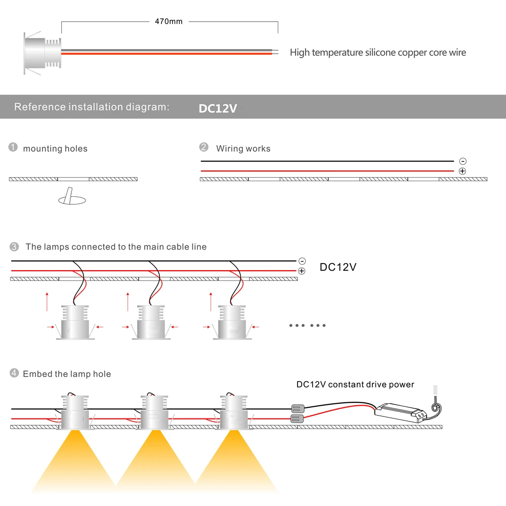 Светильник Потолочный встраиваемый, 1 Вт, мини-прожектор LED, 12 В