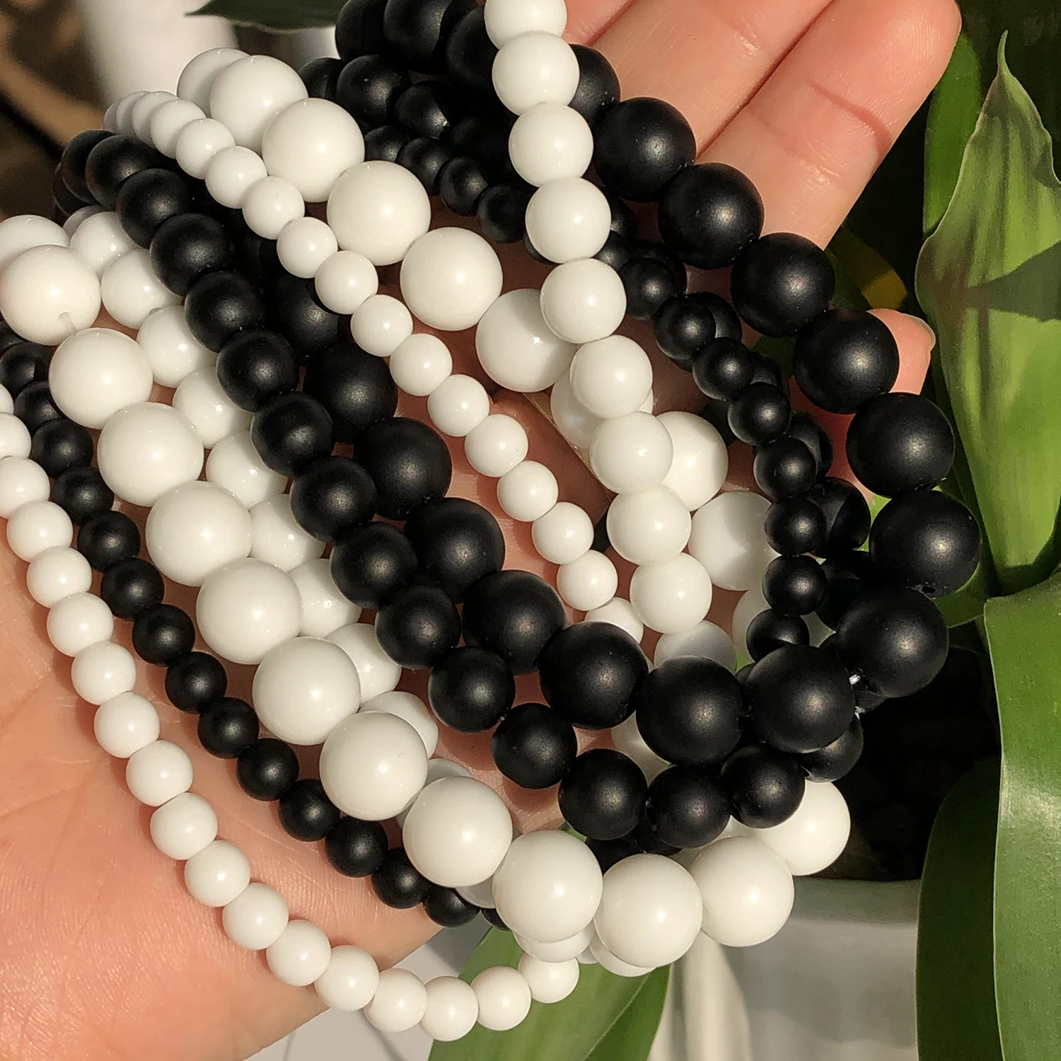 Наименование товара:Натуральная матовая каменная бусина черно-белые Агаты Гладкий Оникс Круглые бусины для Шарм, изготовление украшений DIY браслет ожерелье 4-12 мм