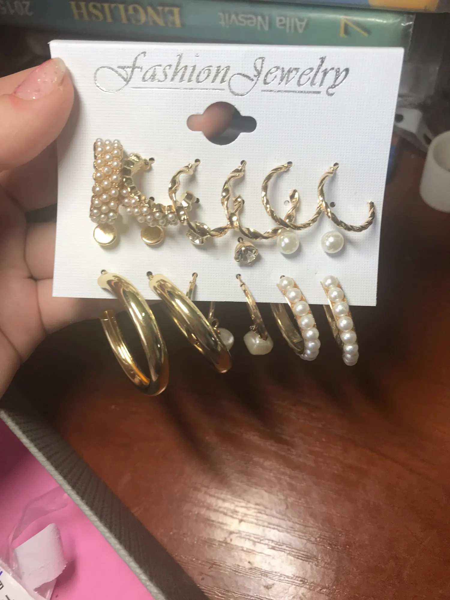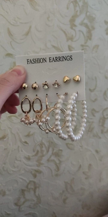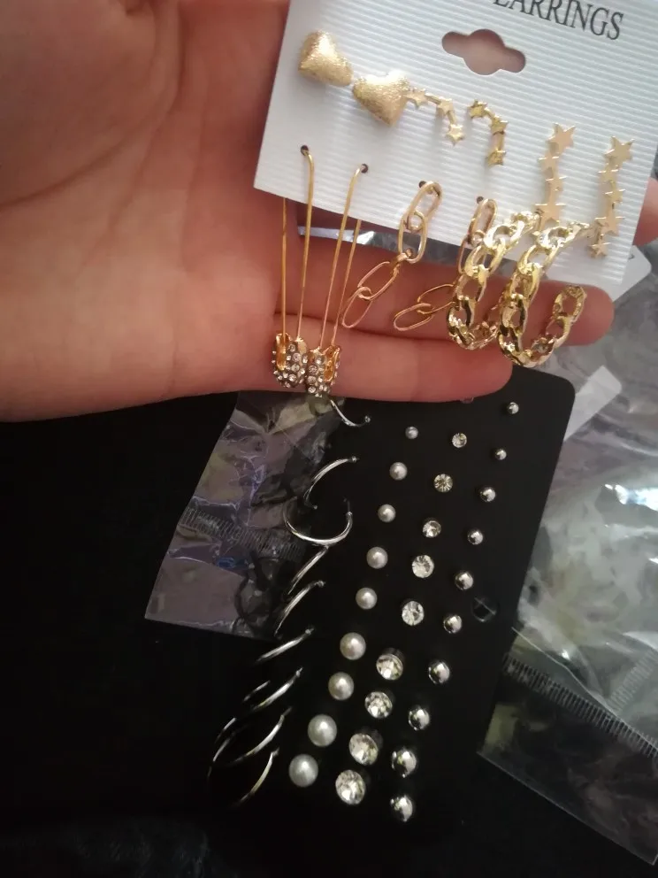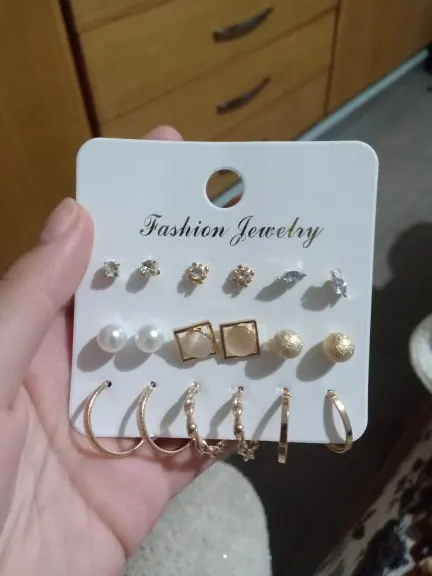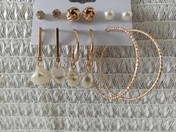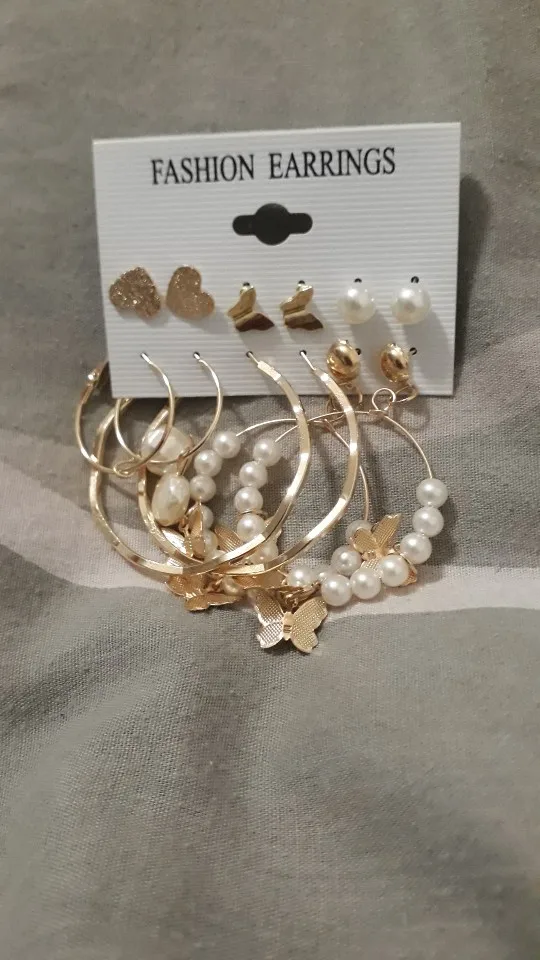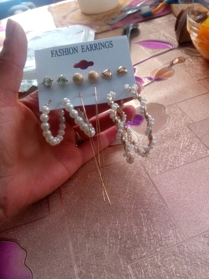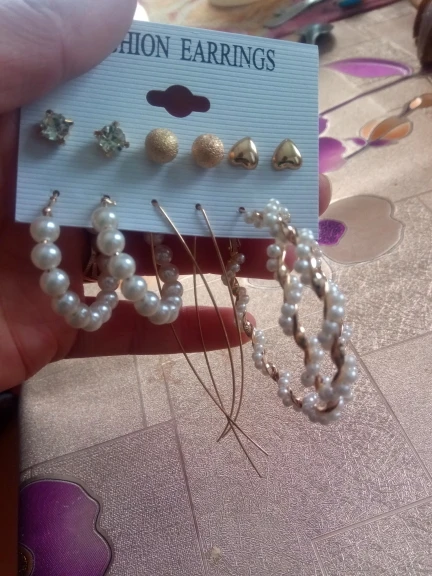 Серьги как на картинке, и также как на картинке, не хватает одной пары)) качество не плохое, но думаю быстро покраснеют, а так все красиво, шло не очень долго с учётом китайского нг. заказала вроде 8 февраля ,пришли 1 марта в Элисту