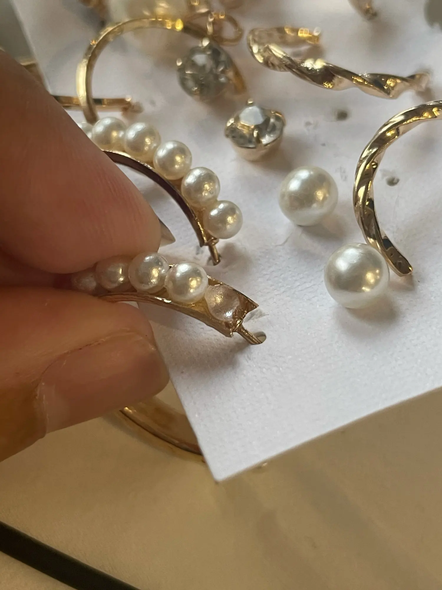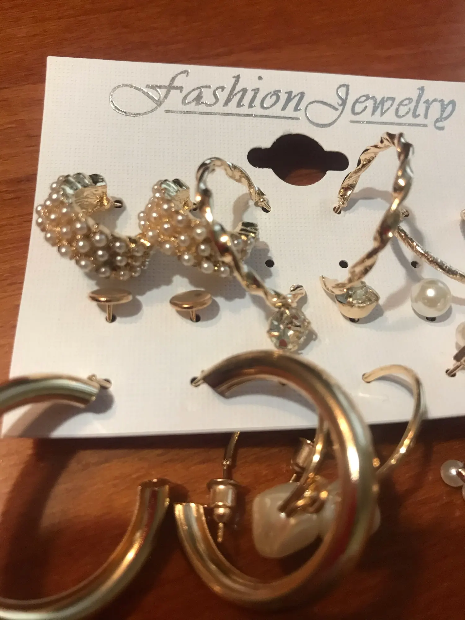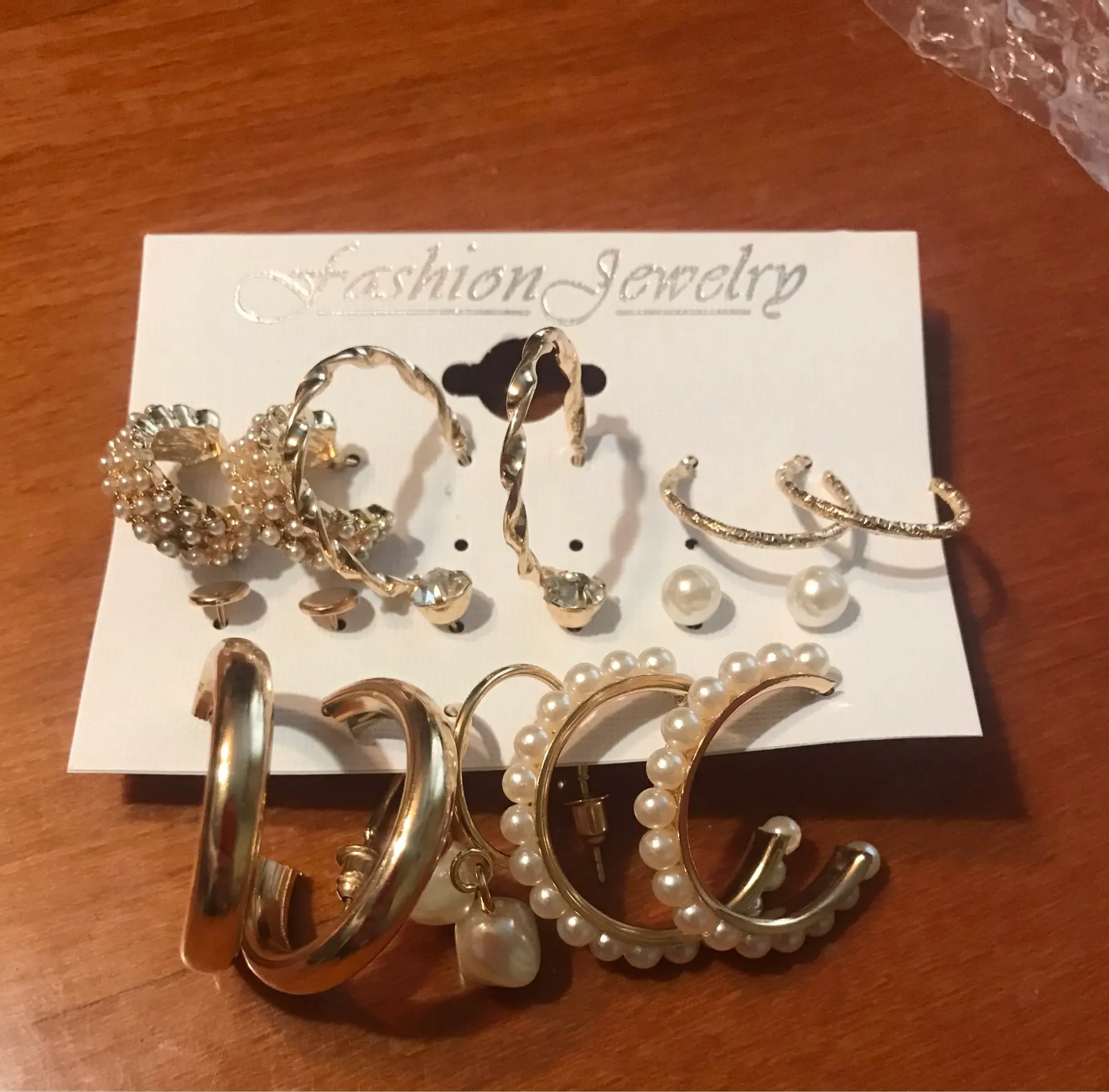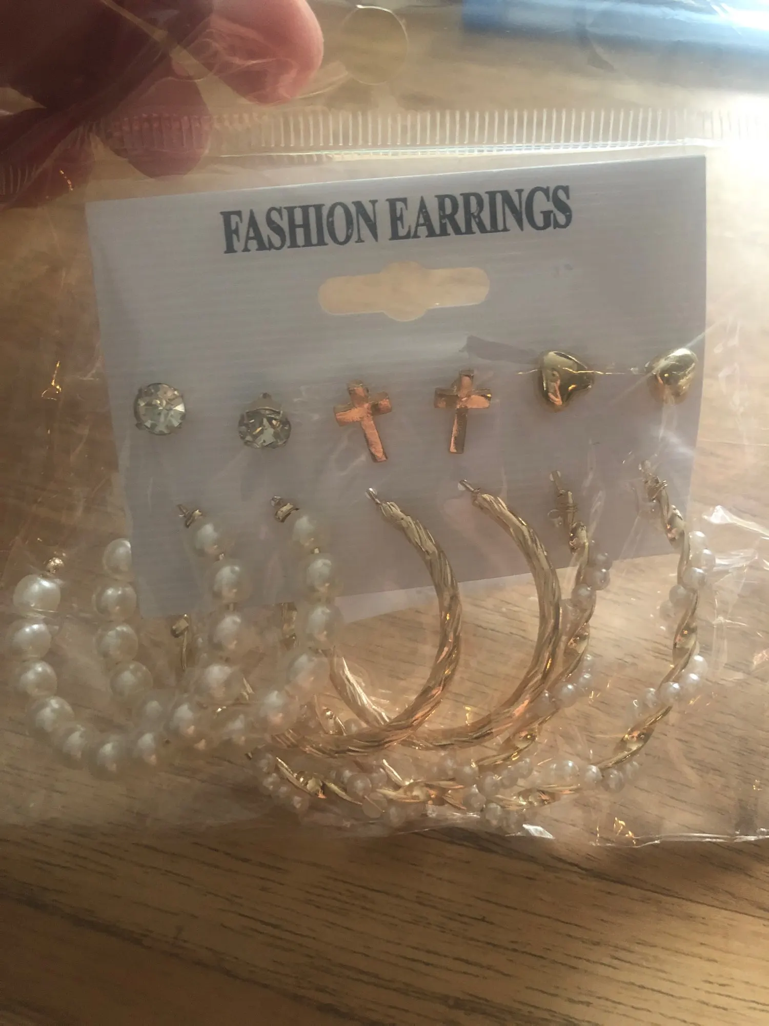Серьги как на картинке, и также как на картинке, не хватает одной пары)) качество не плохое, но думаю быстро покраснеют, а так все красиво, шло не очень долго с учётом китайского нг. заказала вроде 8 февраля ,пришли 1 марта в Элисту