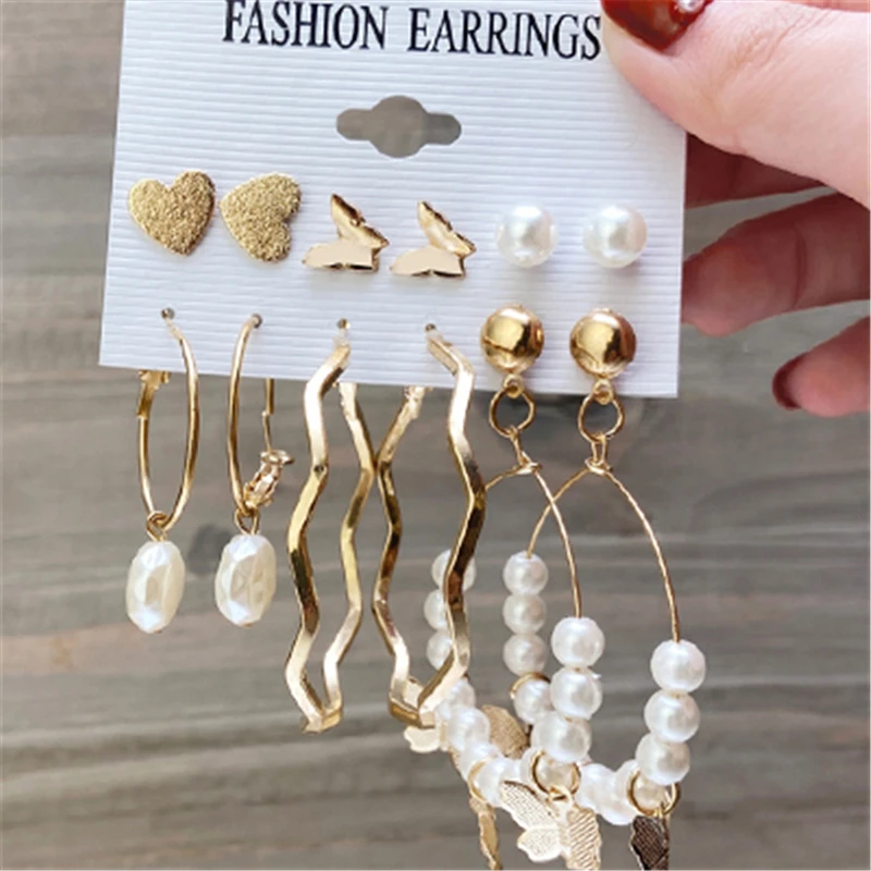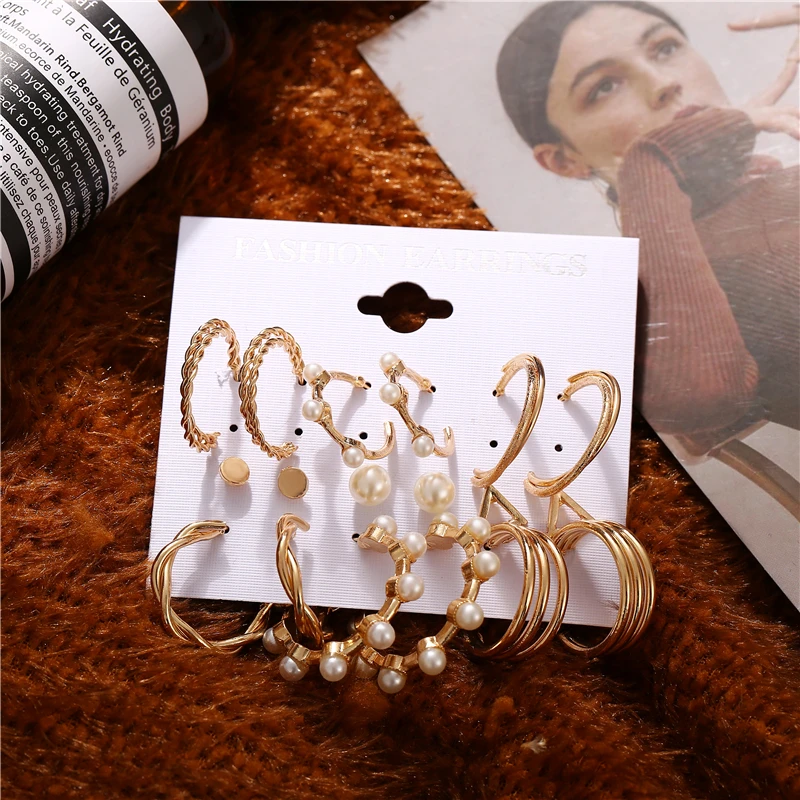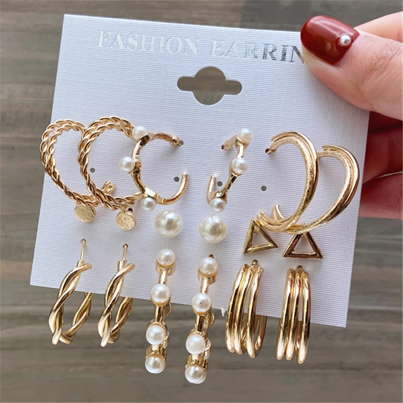 Женские серьги-кольца с жемчугом, золотистые, геометрические, эффектные, 2021