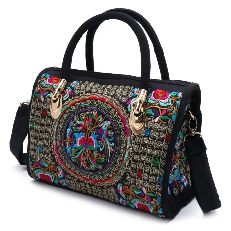 Новое поступление, женская сумка с цветочной вышивкой, этническая Холщовая Сумка для покупок в стиле бохо, сумка-тоут на молнии