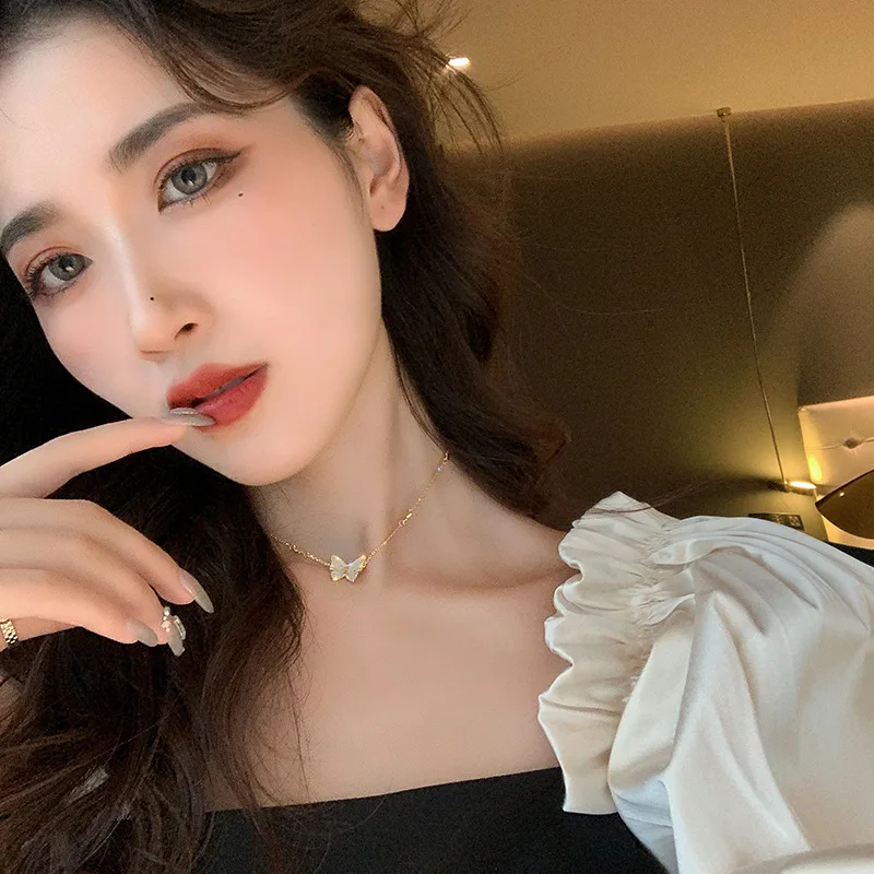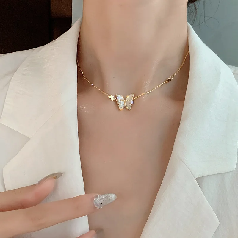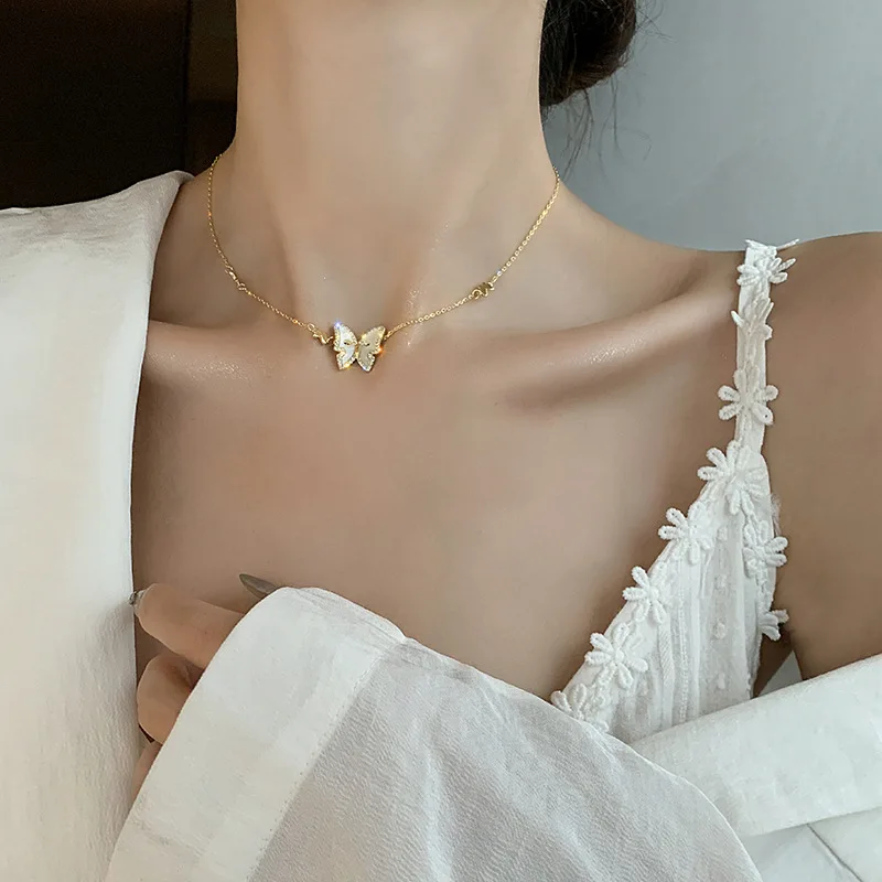 Ожерелье с блестящими бабочками для женщин, подвески золотого цвета, ювелирные изделия для вечевечерние, оптовая продажа подарков