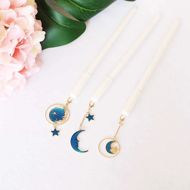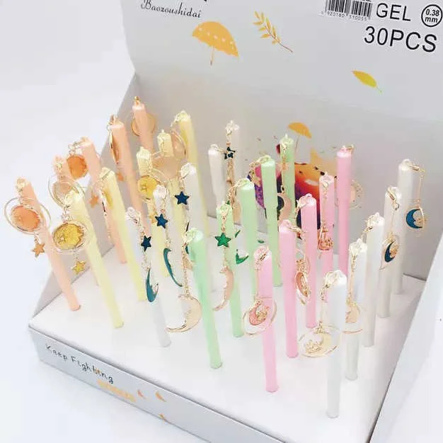 Эллен Брук, 1 шт., звезда, луна, карамельные цвета, белая кардовая подвеска, гелевая чернильная ручка, подарок, канцелярские товары, школьные и офисные подарочные ручки