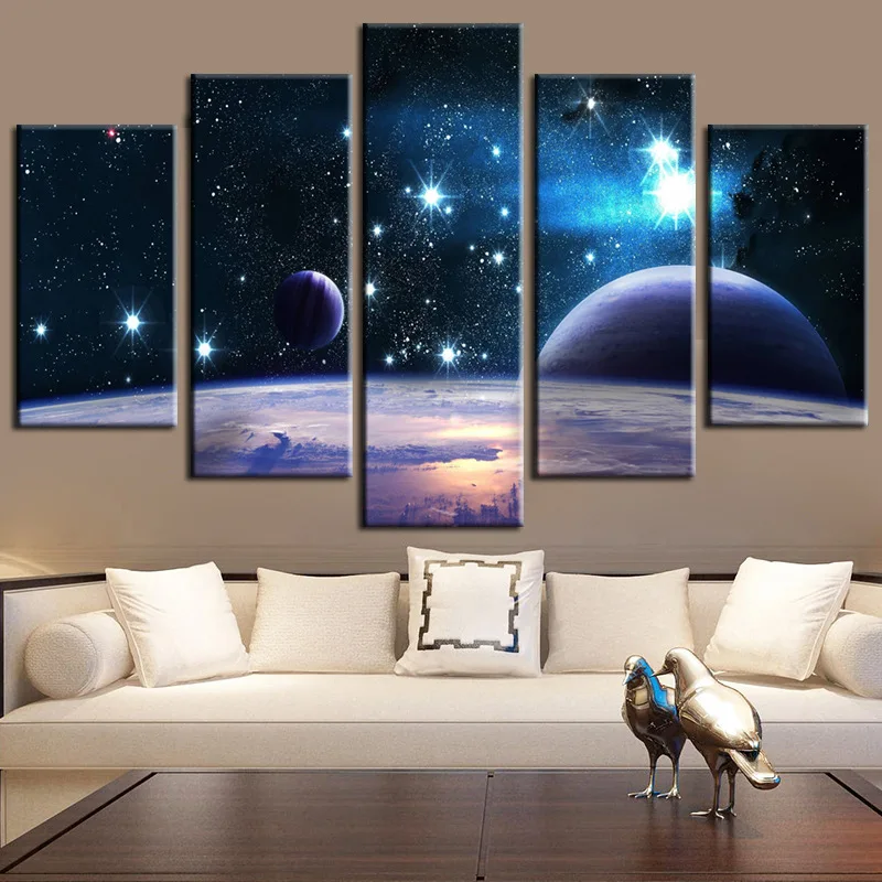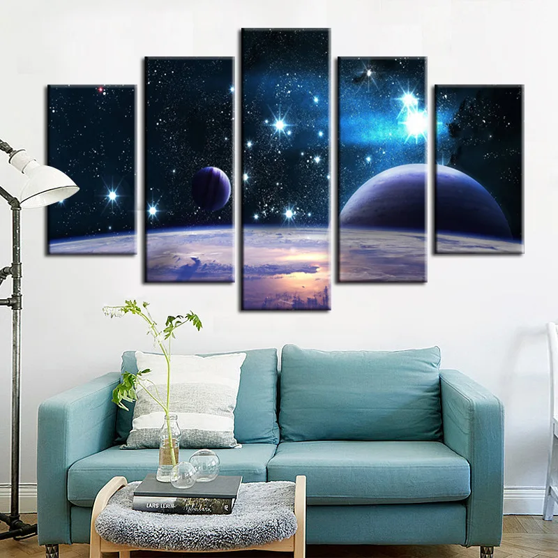 5 шт. HD с принтом Вселенной Galaxy отражение космическая планета картина модуль гостиной, художественное украшение для дома, плакат искусство бескаркасные