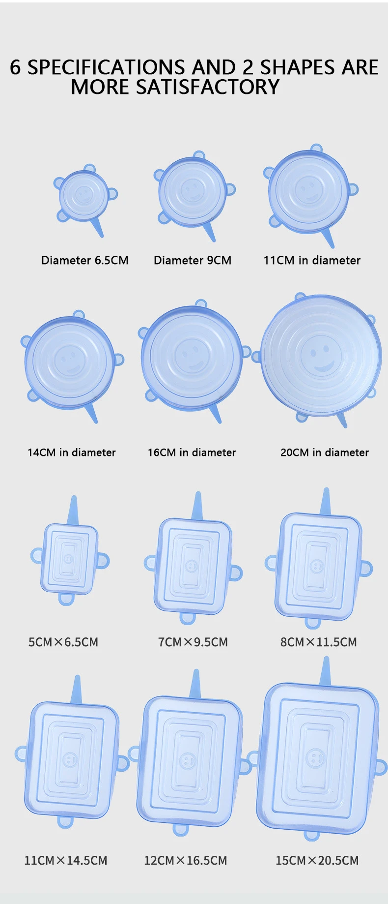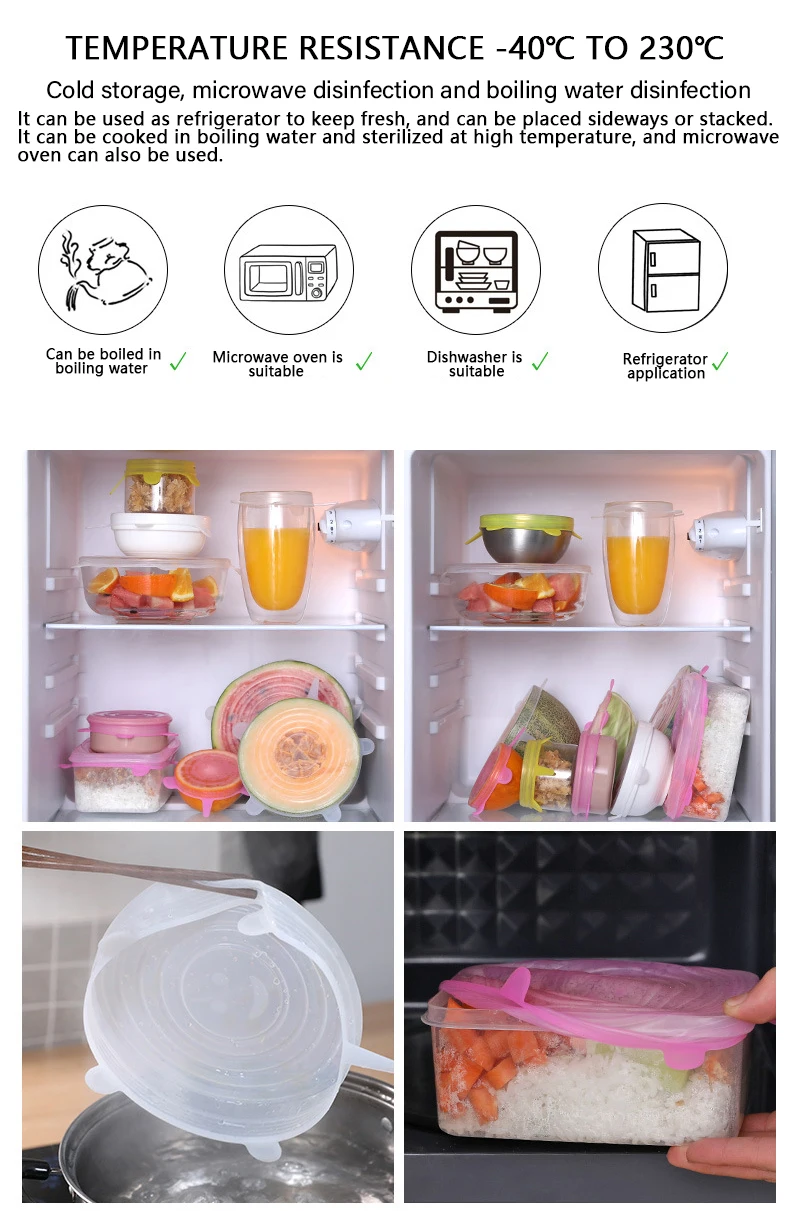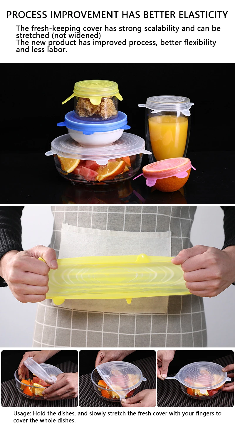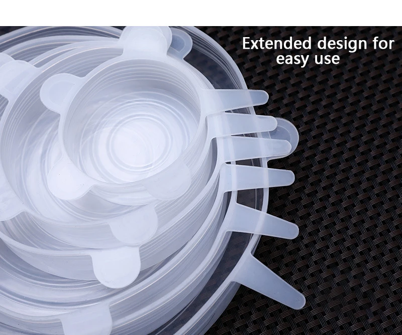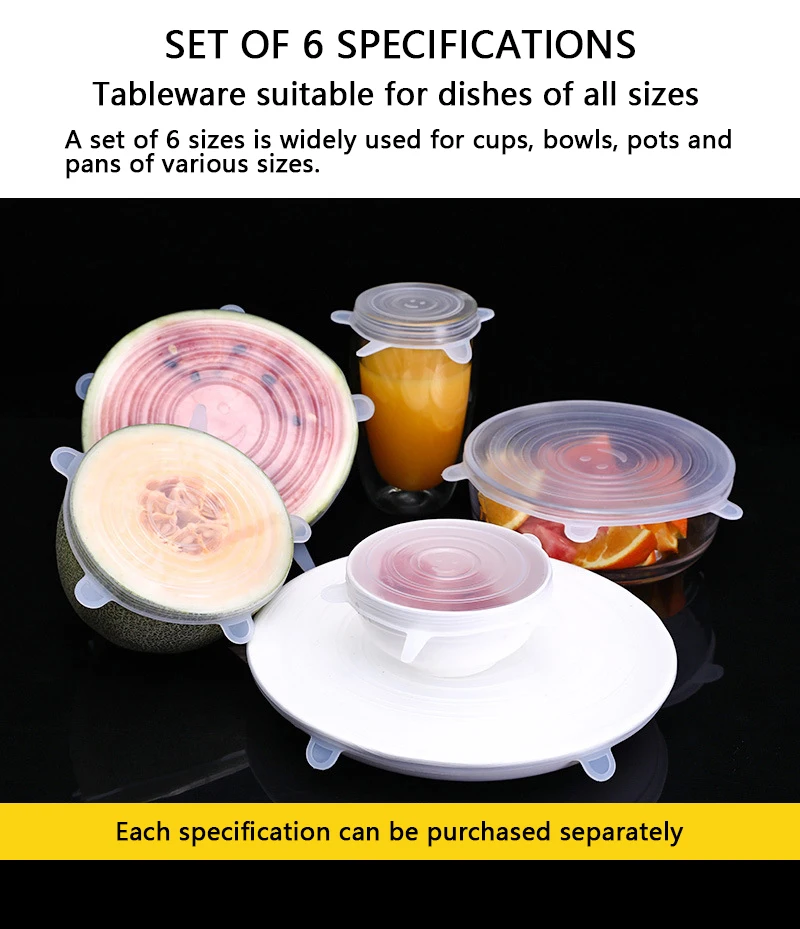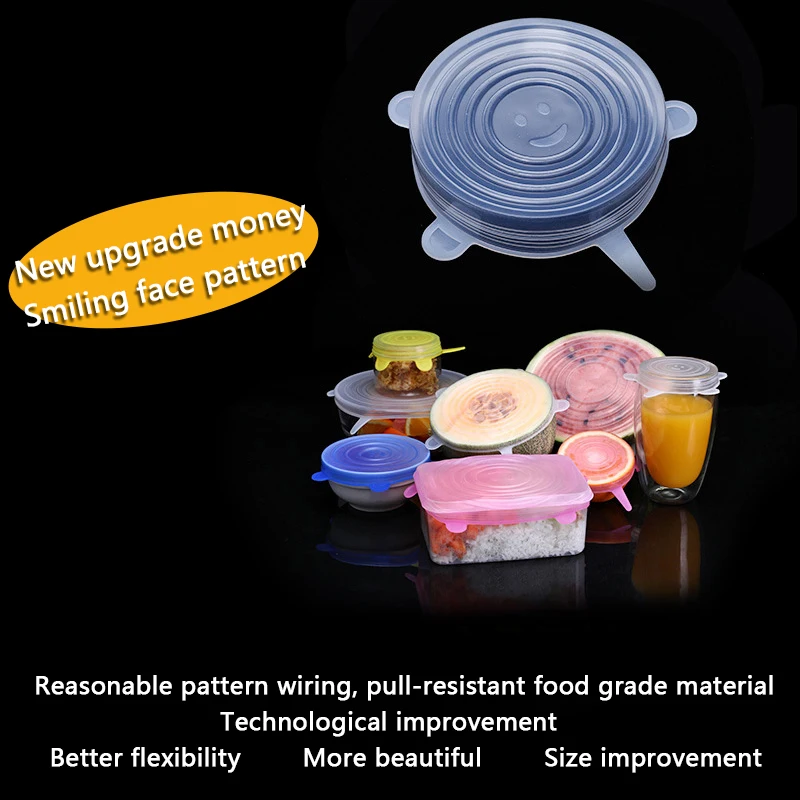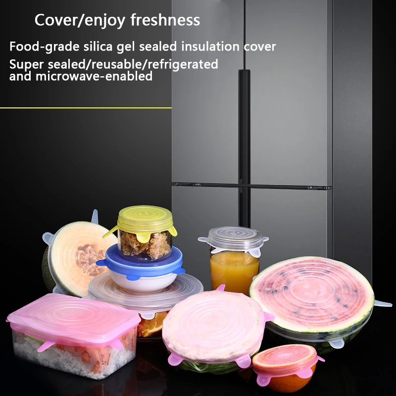 Универсальная силиконовая растягивающаяся кухонные крышки для хранения пищевых продуктов, подходит для различных контейнеров, 6 шт.