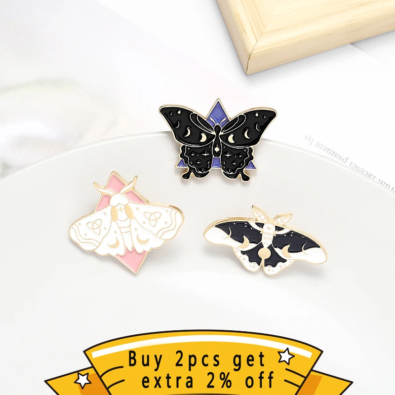Волшебная бабочка Мотылек эмалевые булавки ночные звезды Броши нагрудные значки Оптовая Продажа булавка панк готический ювелирные изделия подарки для друга