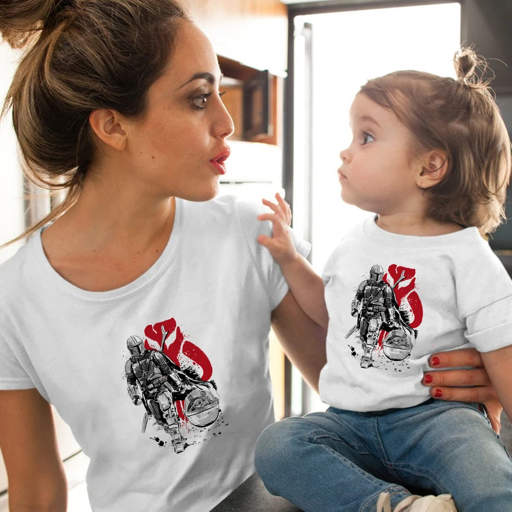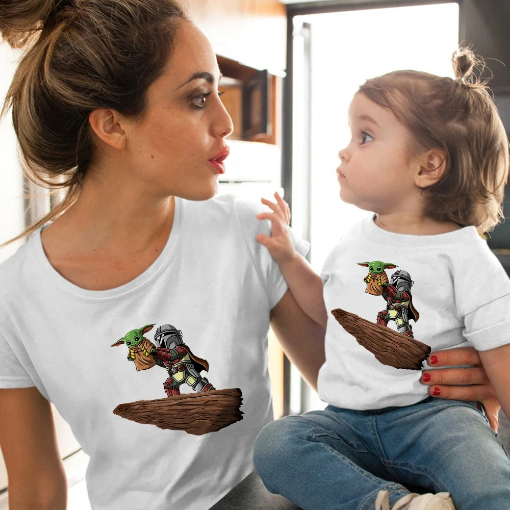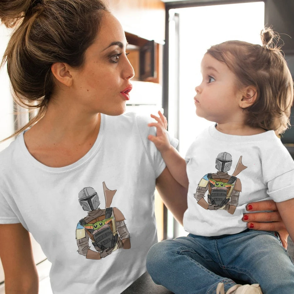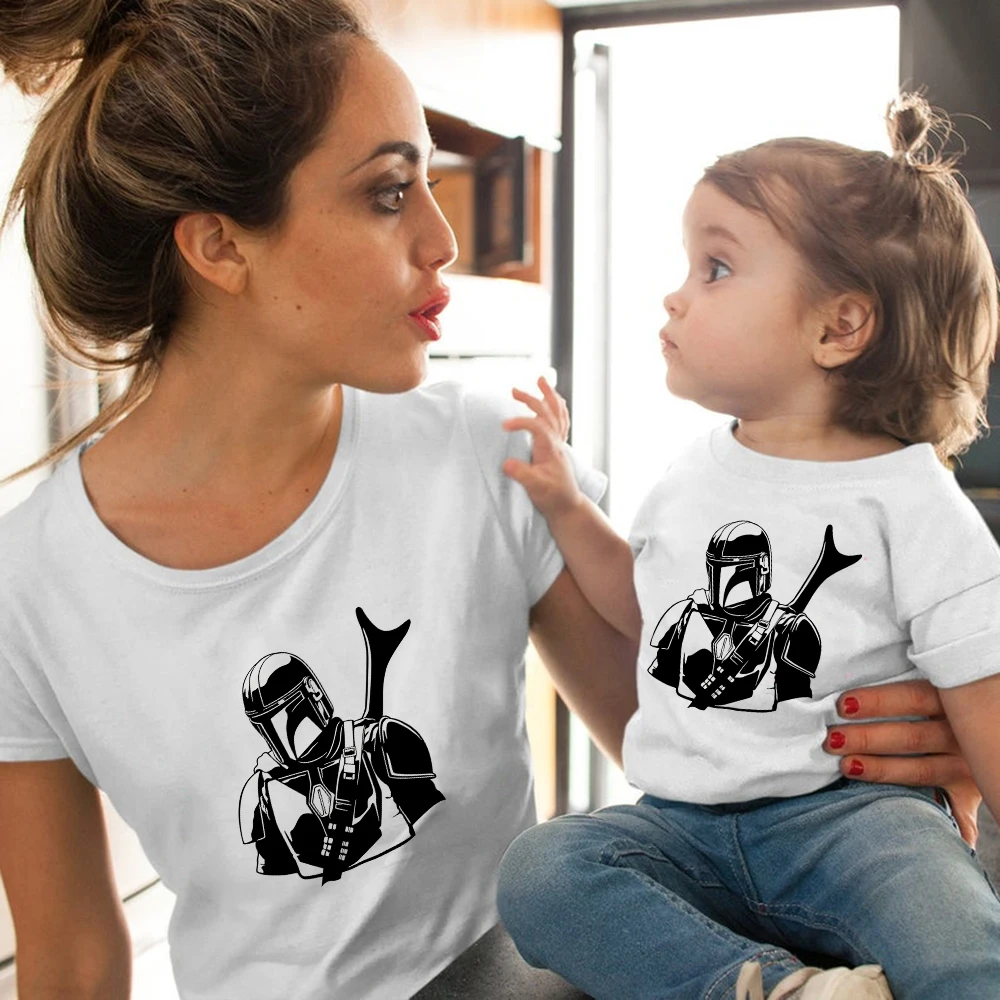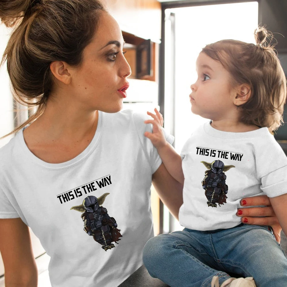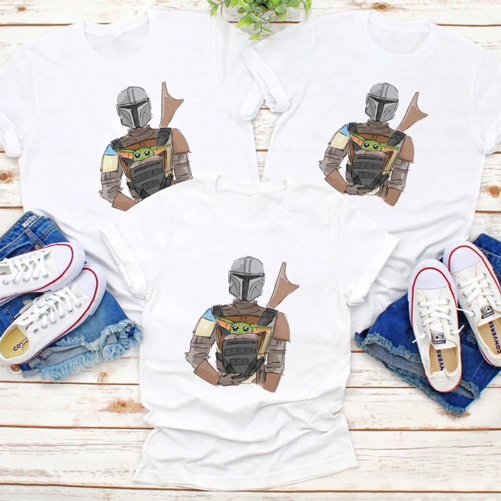 Новинка; В стиле Харадзюку для йода как стать Мандалорское одежды в стиле "унисекс" с рисунком повседневная детская футболка летние топы футболки Семейные комплекты одежды