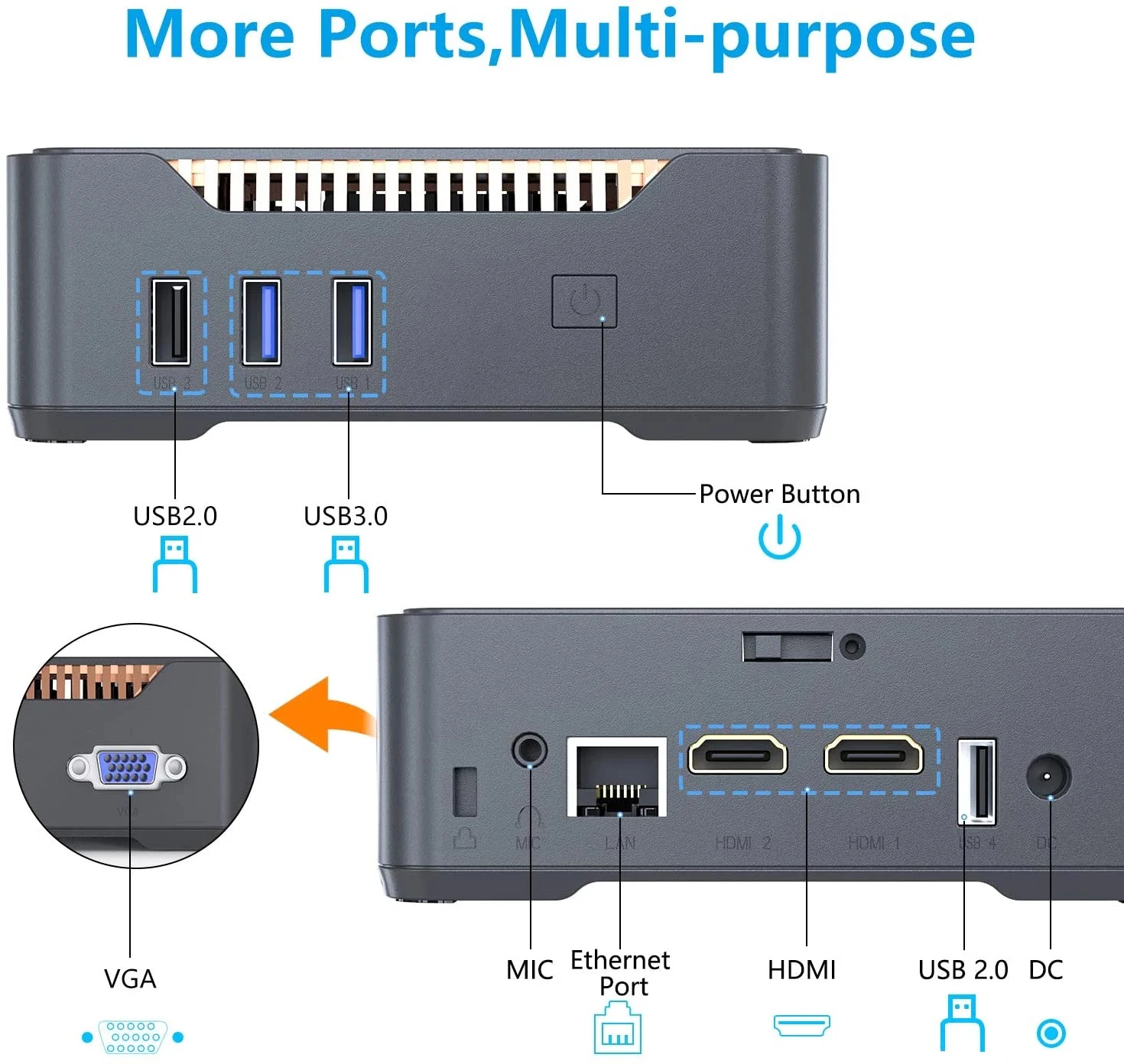 Мини-ПК GK3V Intel J4125 AK3V J3455 DDR4 8 Гб 256 ГБ SSD Windows 10 Dual WIFI 1000M LAN 4K WIN10