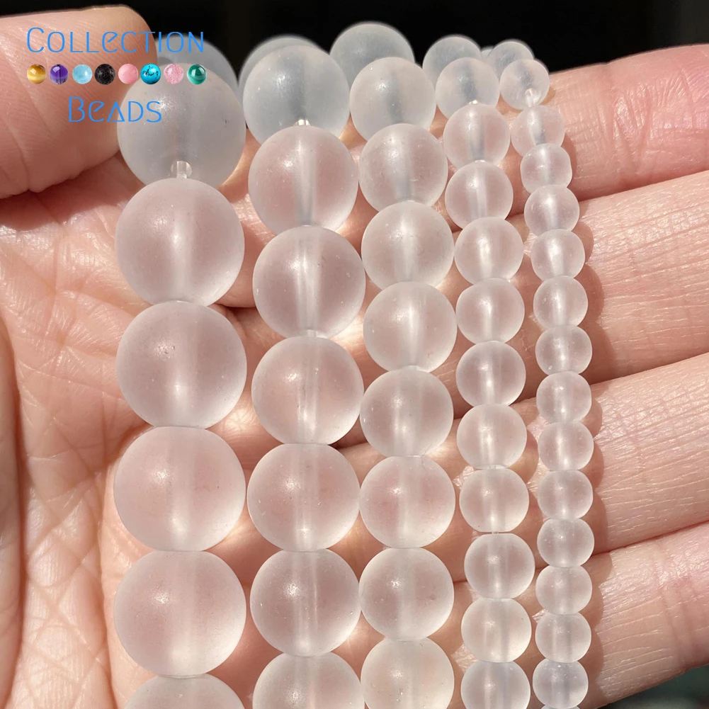 Натуральный Матовый полированный белый кристаллический камень для изготовления ювелирных изделий 4-12 мм Diy Браслеты Аксессуары 15"