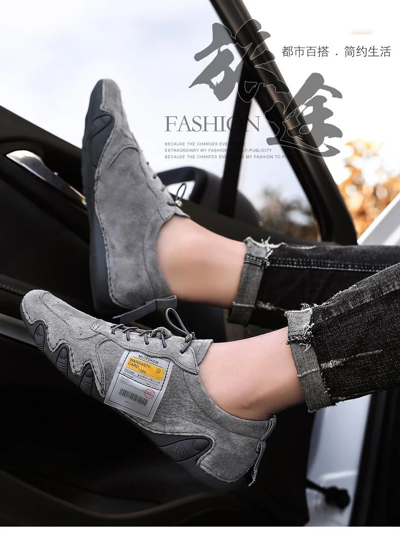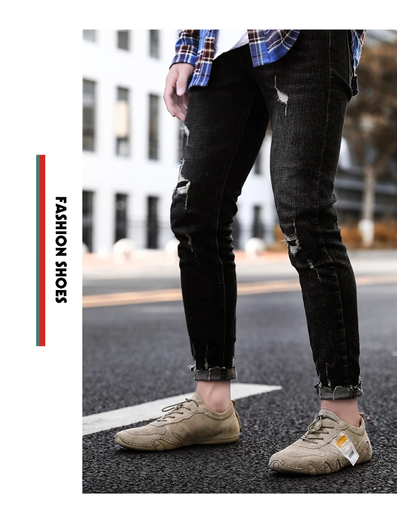 Мужские кроссовки из коровьей замши, мужские лоферы, модная мужская обувь для вождения, мягкие мокасины