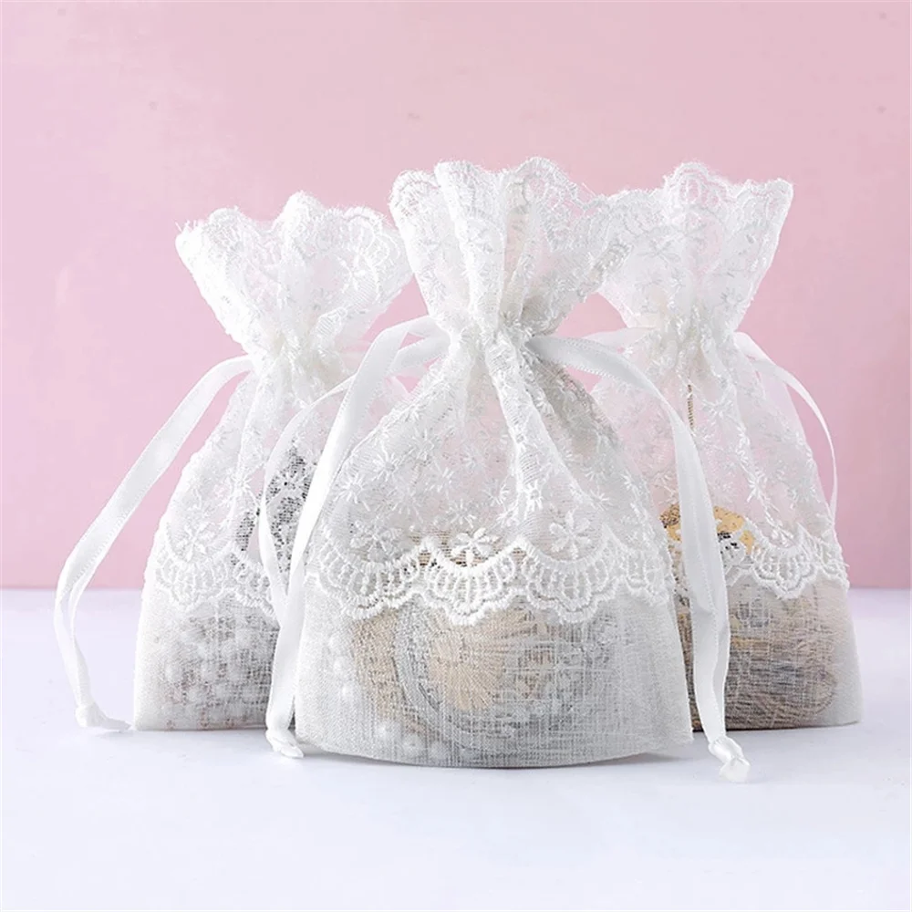 Белый шнурок из сетчатой ткани, мешки из Свадебная вечеринка печенье конфеты Шоколадные украшения подарочная упаковка мешки 10x14cm