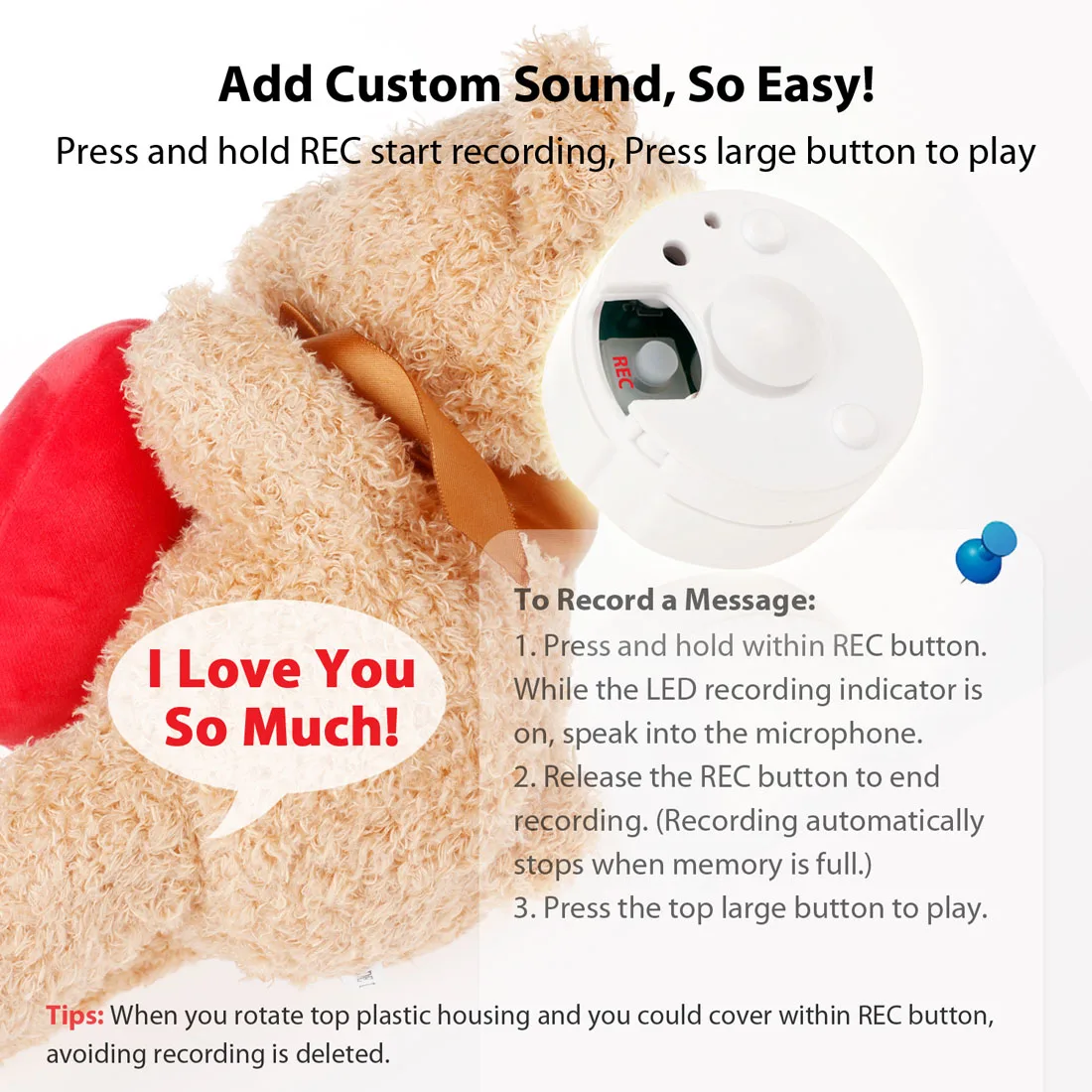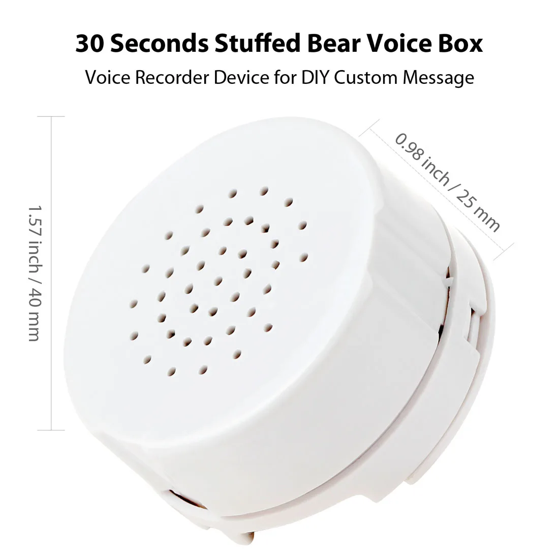 EKSEN голос Регистраторы, в течение 30 секунд, звук голоса, Регистраторы модуль для плюшевых игрушек, мягкие Животные, детские куклы и т. Д. Легко записывать пользовательские сообщения, идеальное устройство для сделай себе сам подарки.Создавайте индивидуальные подарки для близких и друзейВ течение 30 секунд голосовой Регистраторы-Записывайте до 30 секунд сообщение или песню для любимого человека. Легко перезаписывать новые сообщения, пока вы не получите идеальную запись.Громкое и четкое воспроизведение-Диктофон обеспечивает наилучший звук. Супер громкое и четкое воспроизведение. Легко слышится через ткань, материал.Простота в эксплуатации-Нажмите и удерживайте кнопку REC, говорите в микрофон. Отпустите кнопку REC, чтобы завершить запись. Нажмите большую верхнюю кнопку для воспроизведения.Мини и модный дизайн-Модный дизайн круглой формы, мини-размер диаметром 40 мм, высота 25 мм. Легко носить с собой в любое время и в любом месте, чтобы сделать своими руками.Уникальная идея подарка-Наш диктофон добавляет к подаркам личное, сердечное прикосновение. Хорошая идея для плюшевых игрушек, мягких животных, детских кукол и даже подушек и одеял.Для записи всего 3 шага.1. Нажмите и удерживайте кнопку REC. Пока светодиодный индикатор записи включен, говорите в микрофон.2. Отпустите кнопку REC, чтобы завершить запись. (Запись автоматически останавливается, когда память заполнена.)3. Нажмите большую верхнюю кнопку для воспроизведения.Когда вы поворачиваете верхний пластиковый корпус, и вы можете покрыть кнопку REC, избегая записи удаляется.