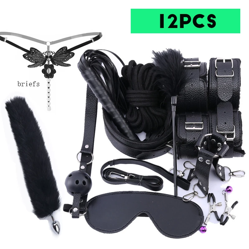 Набор бондаж для кровати, набор для БДСМ, экзотические интимные игрушки для взрослых игр, кожаные наручники, кнут, кляп, хвостовая пробка, женские интимные товары