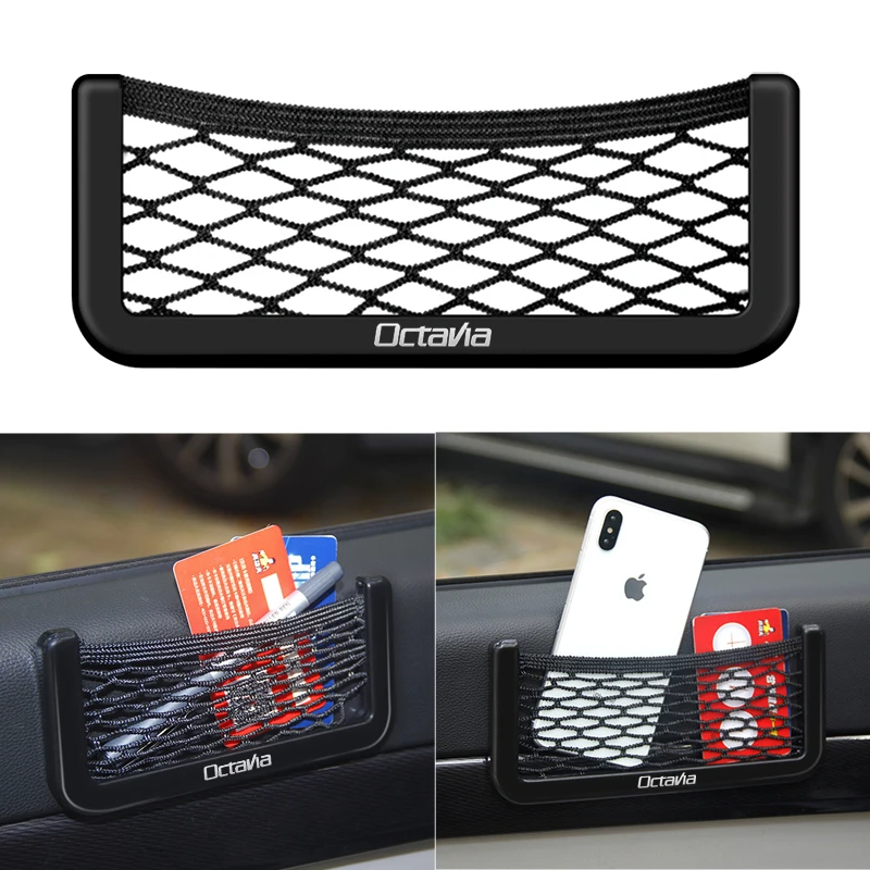 Автомобильный органайзер, сумка для хранения, автомобильный сетчатый Карманный держатель для телефона для skoda octavia fabia rapid yeti Kodiaq, превосходные автомобильные аксессуары