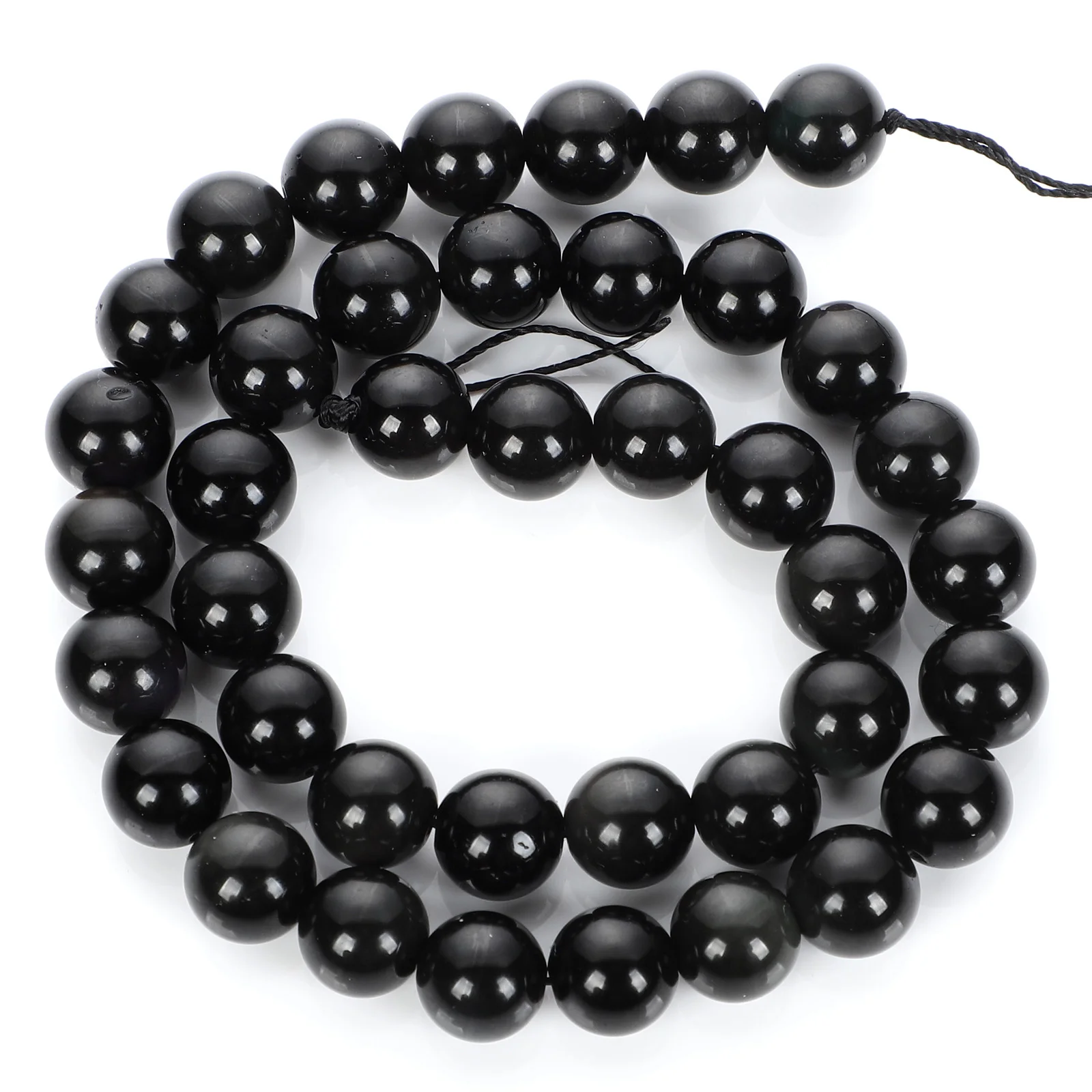 Круглые бусины-разделители из черного радужного обсидиана с натурал...