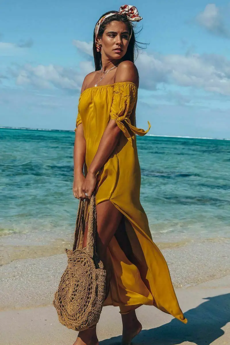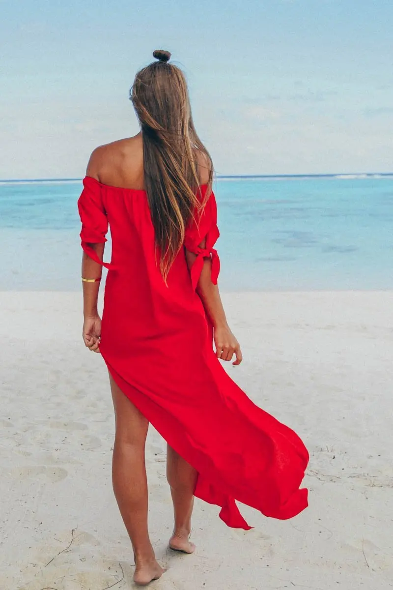 Женская Пляжная накидка, летнее пляжное платье макси, длинное платье с открытыми плечами, Пляжная летняя накидка